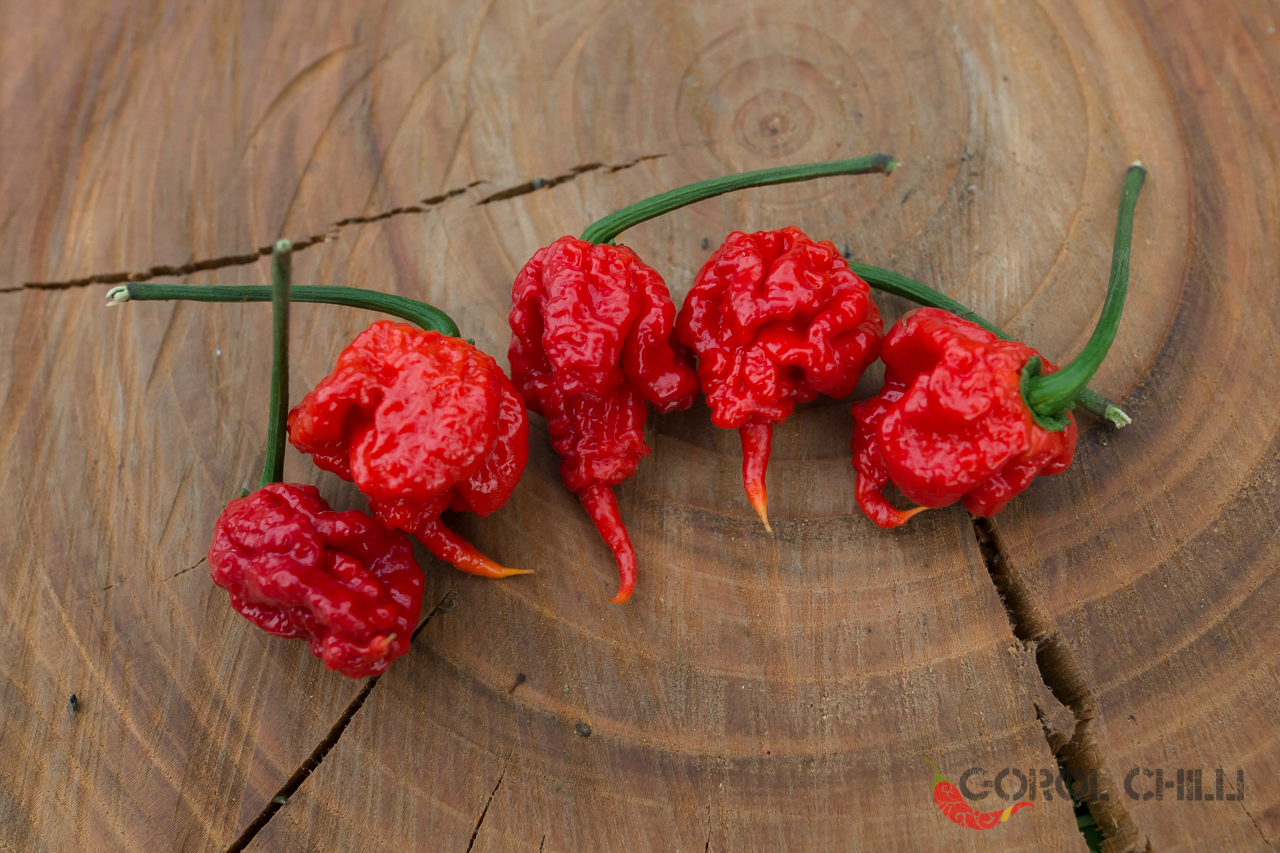 Původ: Kultivar vyšlechtil Troy Primo. Existuje až podezřelé množství nepřímých důkazů, že samotná Carolina Reaper je ve skutečnosti pouze ukradené a přejmenované 7 Pot Primo, s jistotou to však černé na bílé napsat nelze.