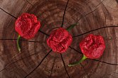 Plody: Moruga na steroidech. Plody jsou robustní, soudečkovité a s extrémně krabatým povrchem. Dorůstají pěkných rozměrů, asi 4-5 cm do délky a okolo 5 cm v průměru. Zprvu jsou tmavě zelené, následně zrají do červené barvy.