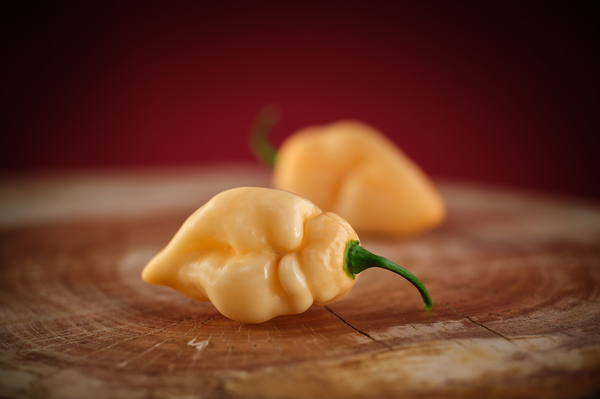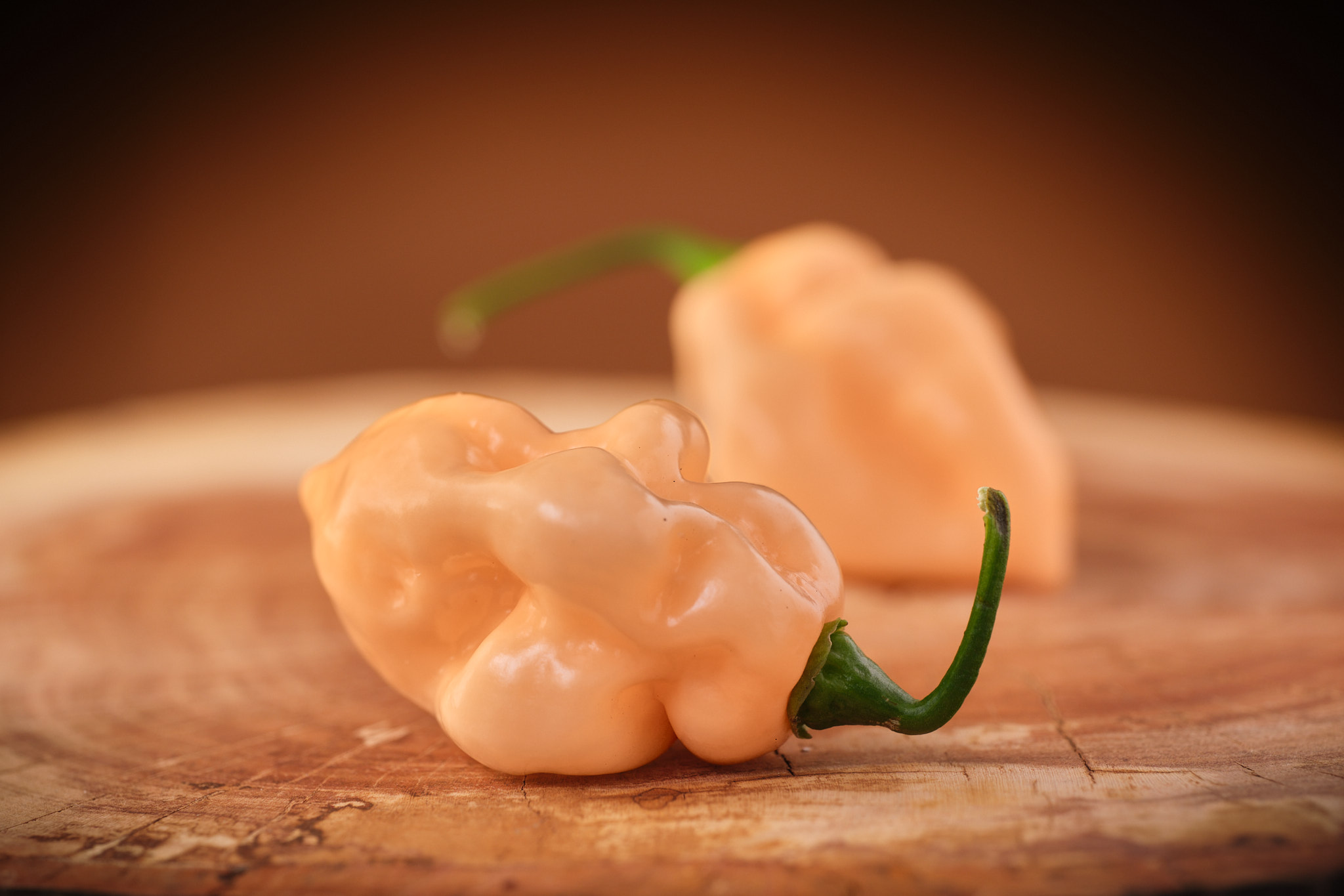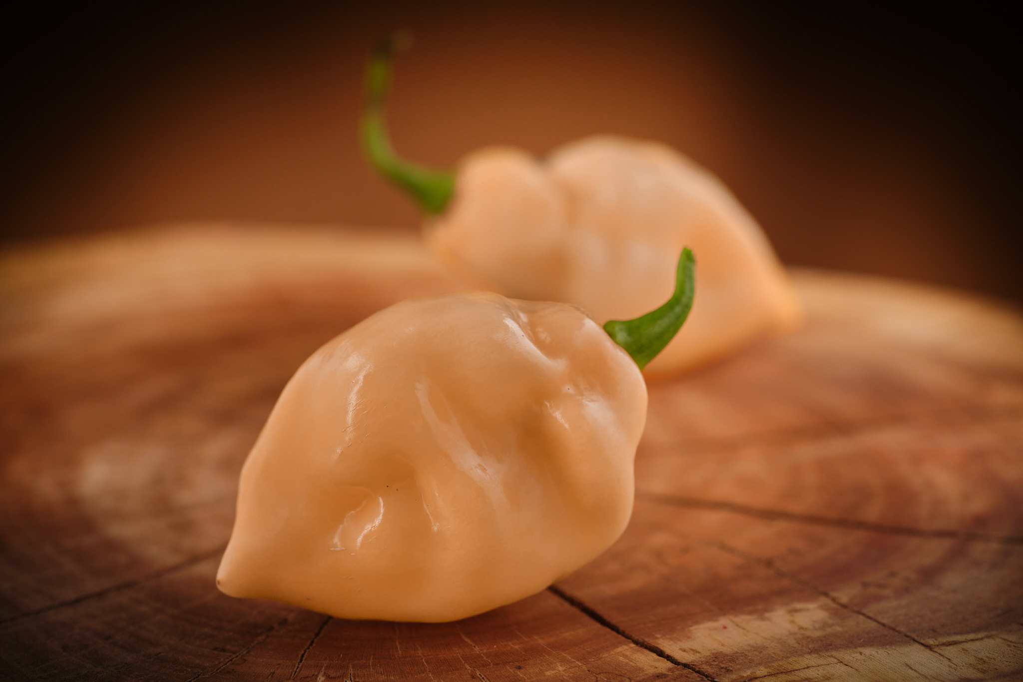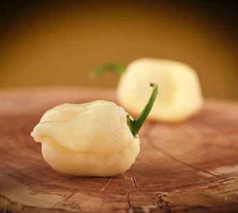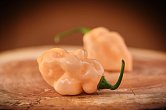 Plody: Robustní, zavalité, svým způsobem připomínají lehce krabaté habanero. Dorůstají délky okolo 5-6 cm a průměru asi 4-5 cm. Zprvu jsou světle zelené, následně zrají do bledě oranžové barvy.  Chuť a pal: Plody se vyznačují jemnou…
