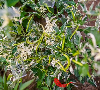 Plody: Podlouhlé, na první pohled připomínající Jolokii ale užší a s výraznou špičkou. Zprvu jsou zelené, následně dozrávají do růžovo oranžové barvy. Chuť a pal: Aroma i chuť jsou velmi ovocné a exotické. Pal je však velmi vysoký, dle…