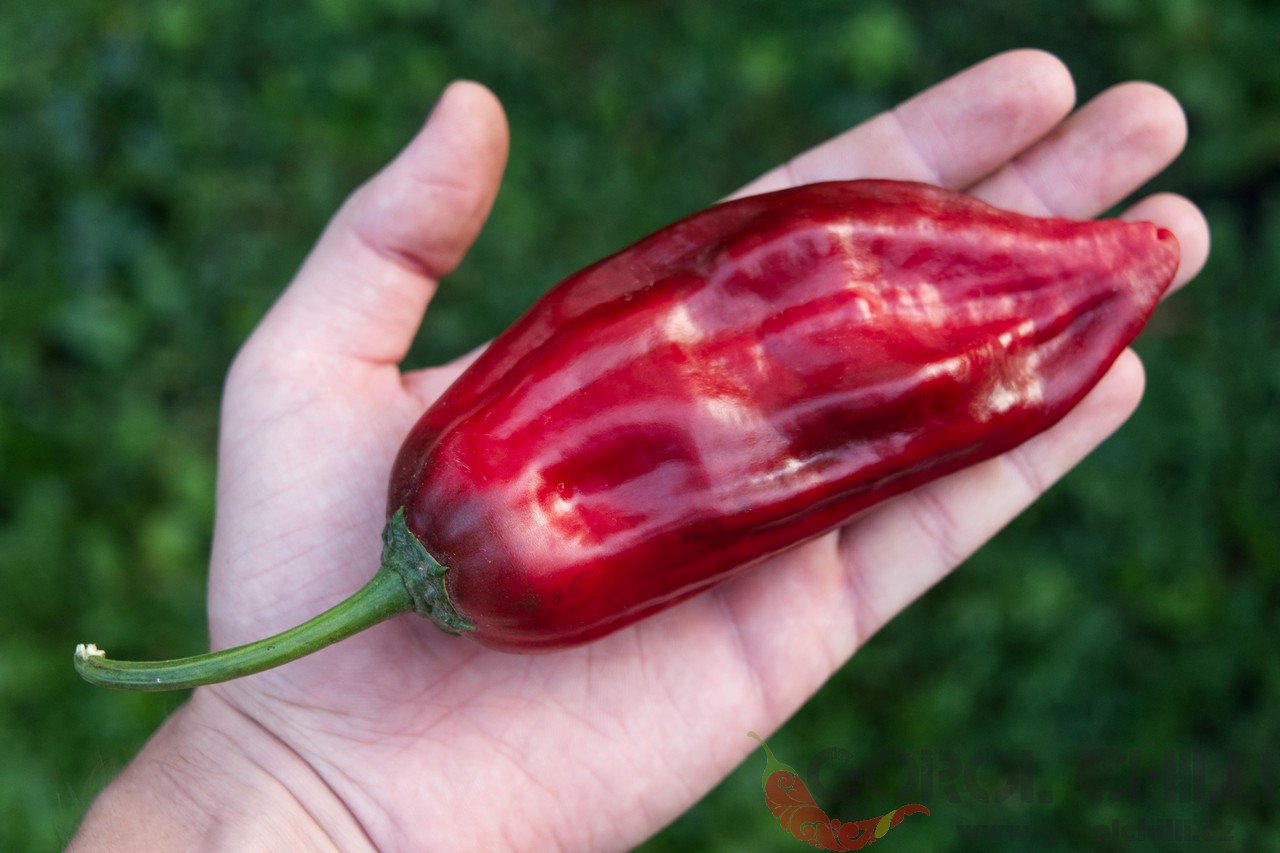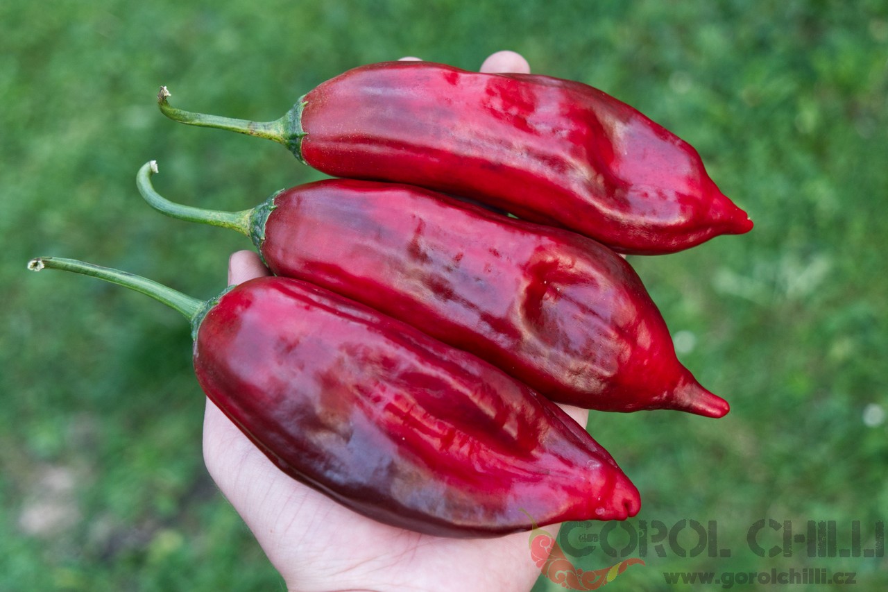 Plody: Podlouhlé, spíše užší a s krabatým povrchem. Dorůstají délky okolo 10 cm a průměru 2-2,5 cm. Zprvu jsou tmavě zelené, následně zrají do červené barvy.  Chuť a pal: Plody mají velmi kořeněnou a zemitou chuť, která je pro kultivary…