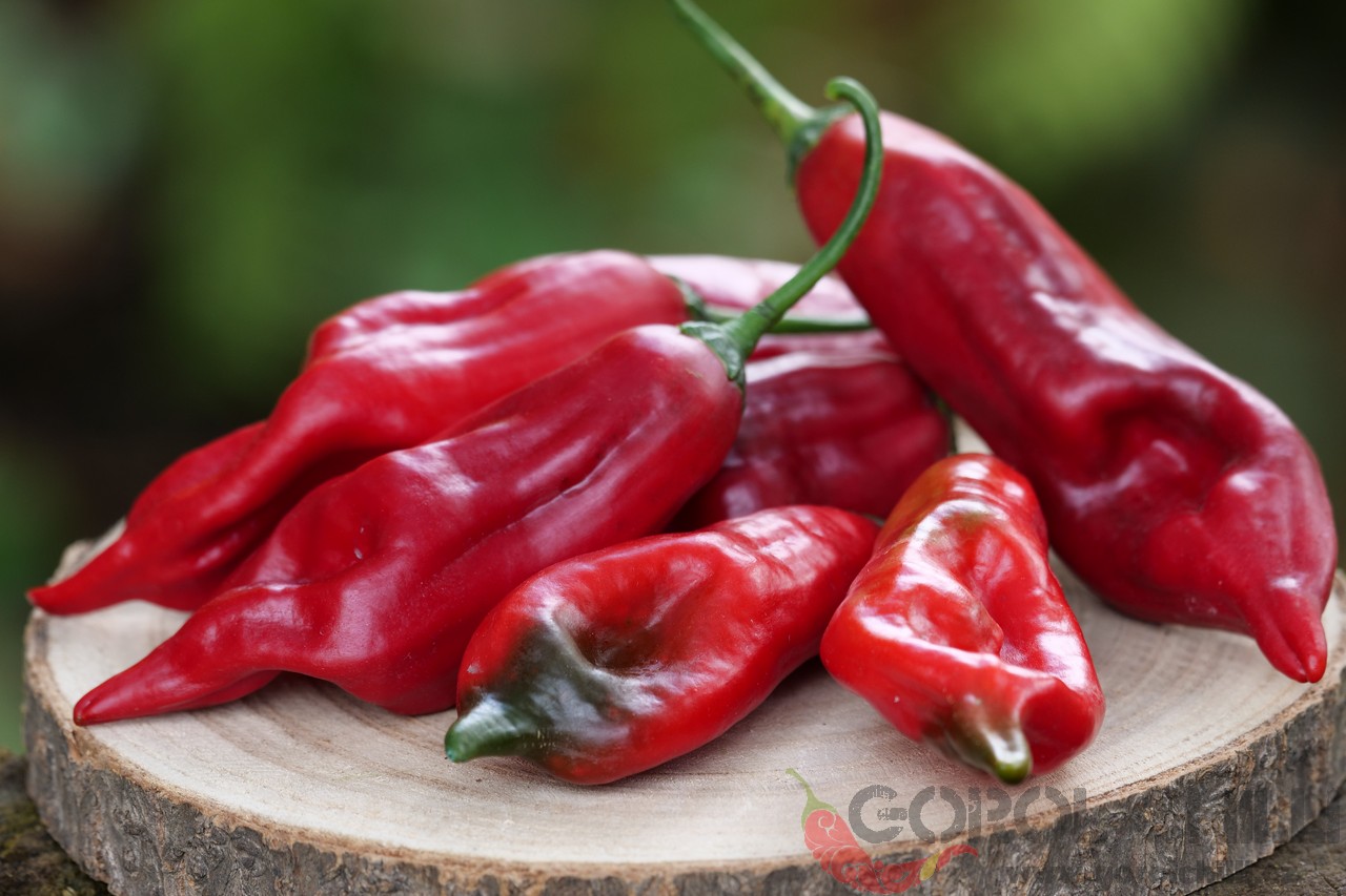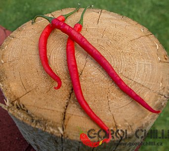 Plody: Podlouhlé, úzké a silně vrásčité. Dorůstají délky okolo 8-11 cm a průměru do 2 cm. Zprvu jsou světle zelené až bělavé, následně zrají do zářivě červené barvy.  Chuť a pal: Papriky vynikají kořeněnou ovocnou chutí, kterou doprovází…