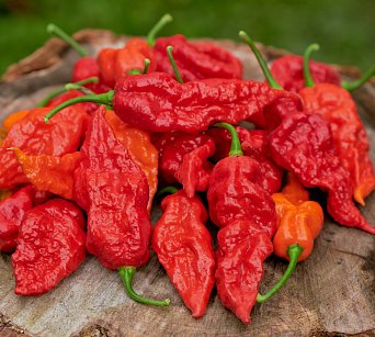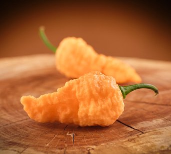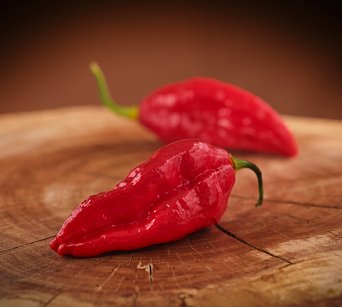Plody: Menší, soudečkovité, na první pohled připomínající zmenšenou Morugu. Zprvu jsou tmavě zelené, později zrají do svítivě červené barvy.  Chuť a pal: Plody jsou ovocné a nezvykle sladké, doprovázené velmi agresivním kořeněným aroma.…