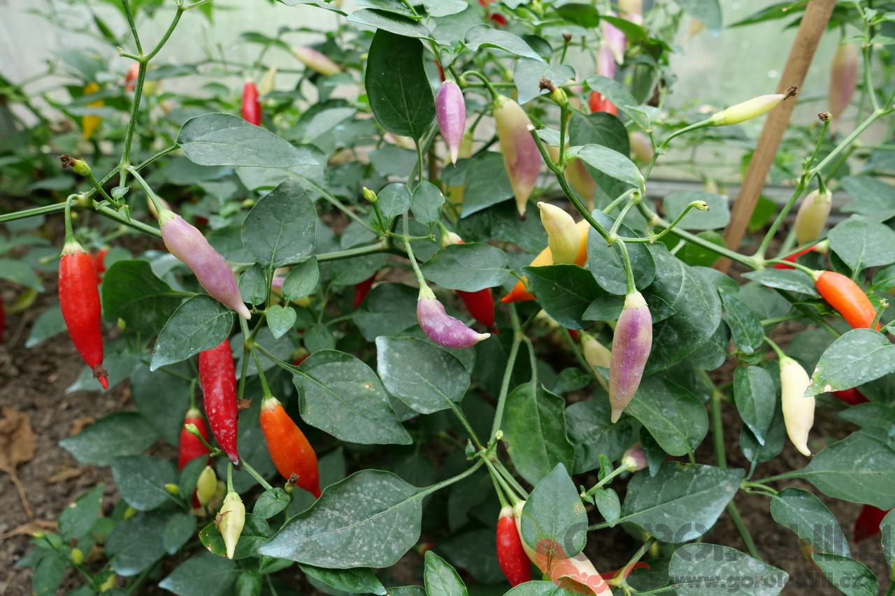 Rostlina: Podobně jako žluá "verze", i červené Challuaruro má onen kompaktní keříkovitý charakter, který je pro kultivary druhu C. baccatum spíše vzácný. Rostlinky jsou jen asi 0,6-1 m vysoké, zato však mohou dorůst i 1-1,5 m v šířce koruny. Celkově je rostlina velmi tmavě zelená s drobnými lístky. Rostliny také velmi dobře zvládají řez a tvarování, vřele ji proto doporučujeme pěstitelům ve zhoršených prostorových podmínkách. Z jedné rostlinky jsme sklidili okolo 500-600 g paprik.