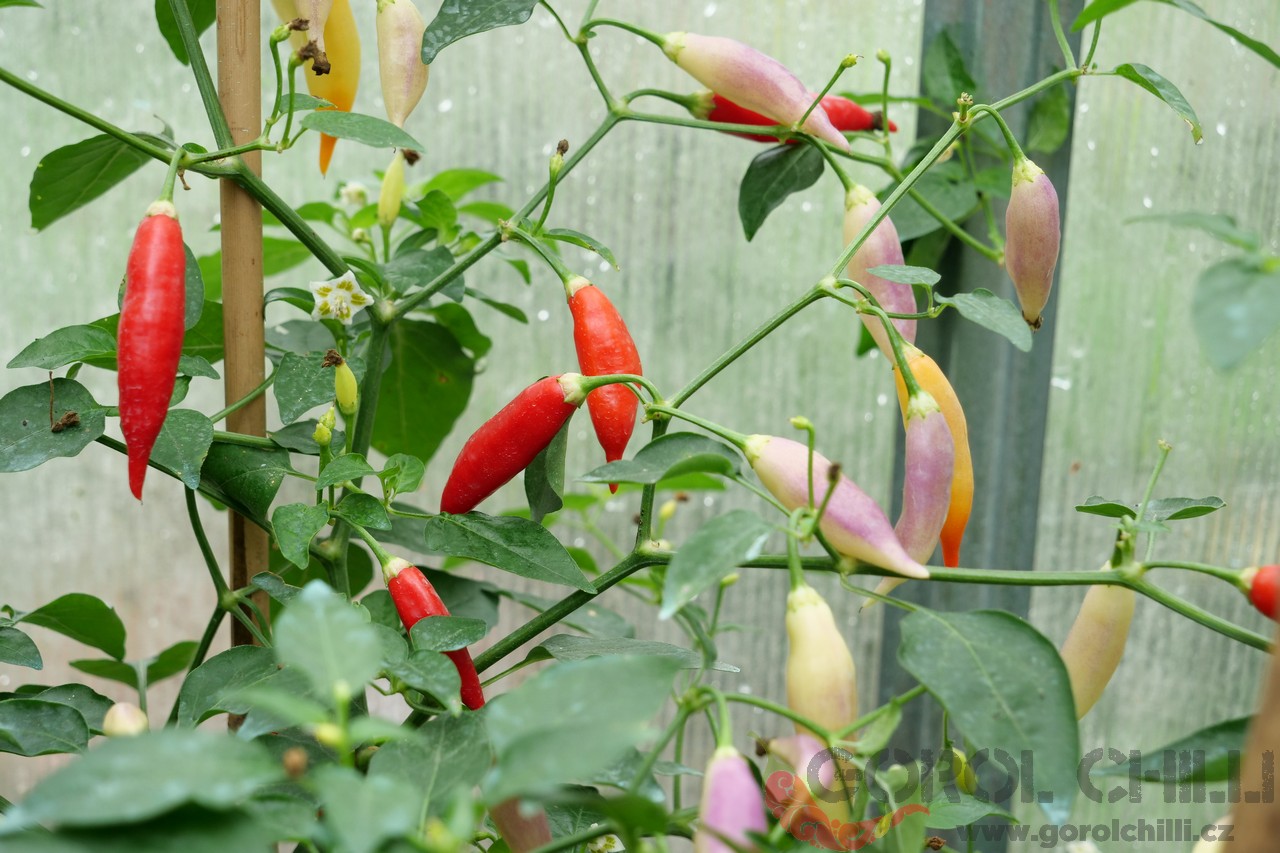 Plody: Kónické, obdélníkovité, kolo 2-3 cm dlouhé a 1 cm široké. Zprvu jsou zelené, později zrají do svítivě červené barvy. Díky tenké stěně plodů začínají plody po dozrání schnout prakticky už na rostlině.  Chuť s pal: Plody mají…