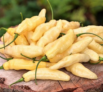 Plody: Robustní, soudečkovité, lehce připomínající "atomový hříbek". Dorůstají okolo 5-6 cm na délku a okolo 5 cm v průměru. Zrají ze světle zelené do krémově bílé barvy.  Chuť a pal: Papriky mají velmi jemnou kořeněnou chuť doprovázenou…