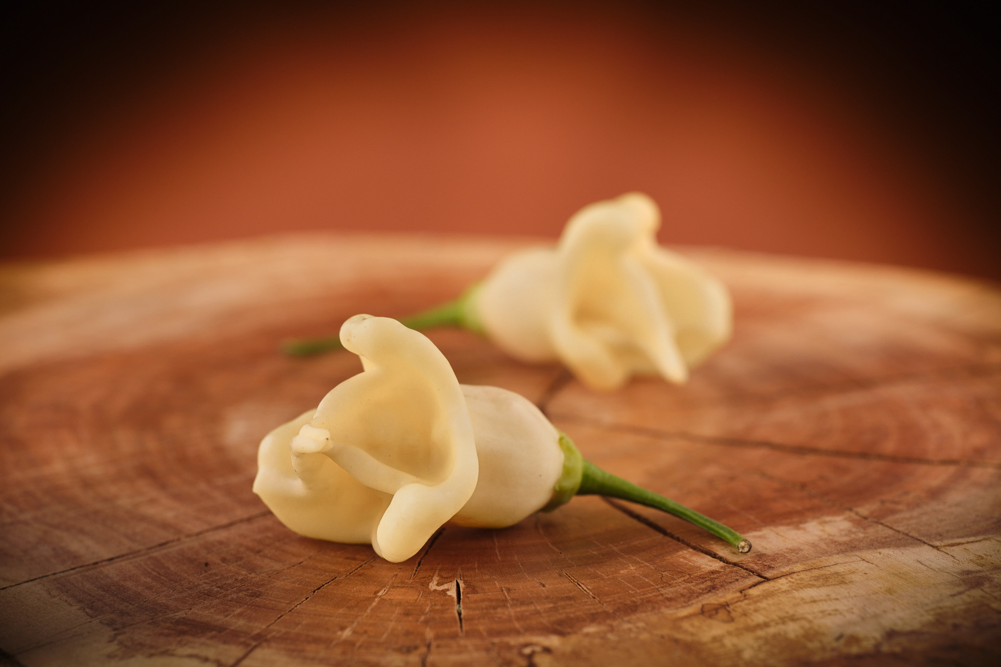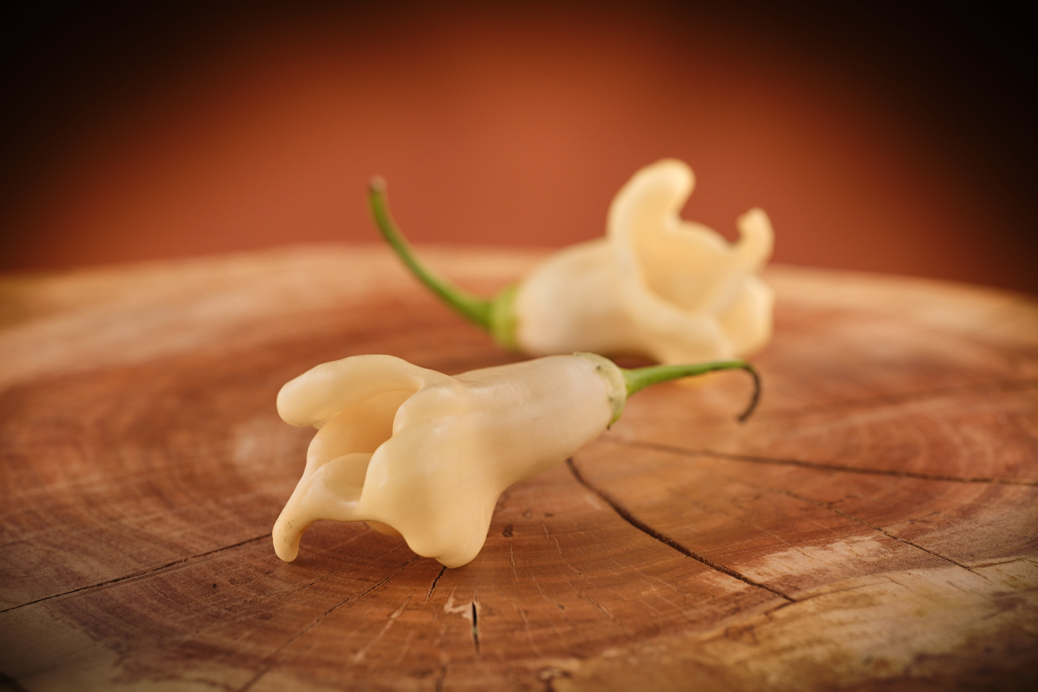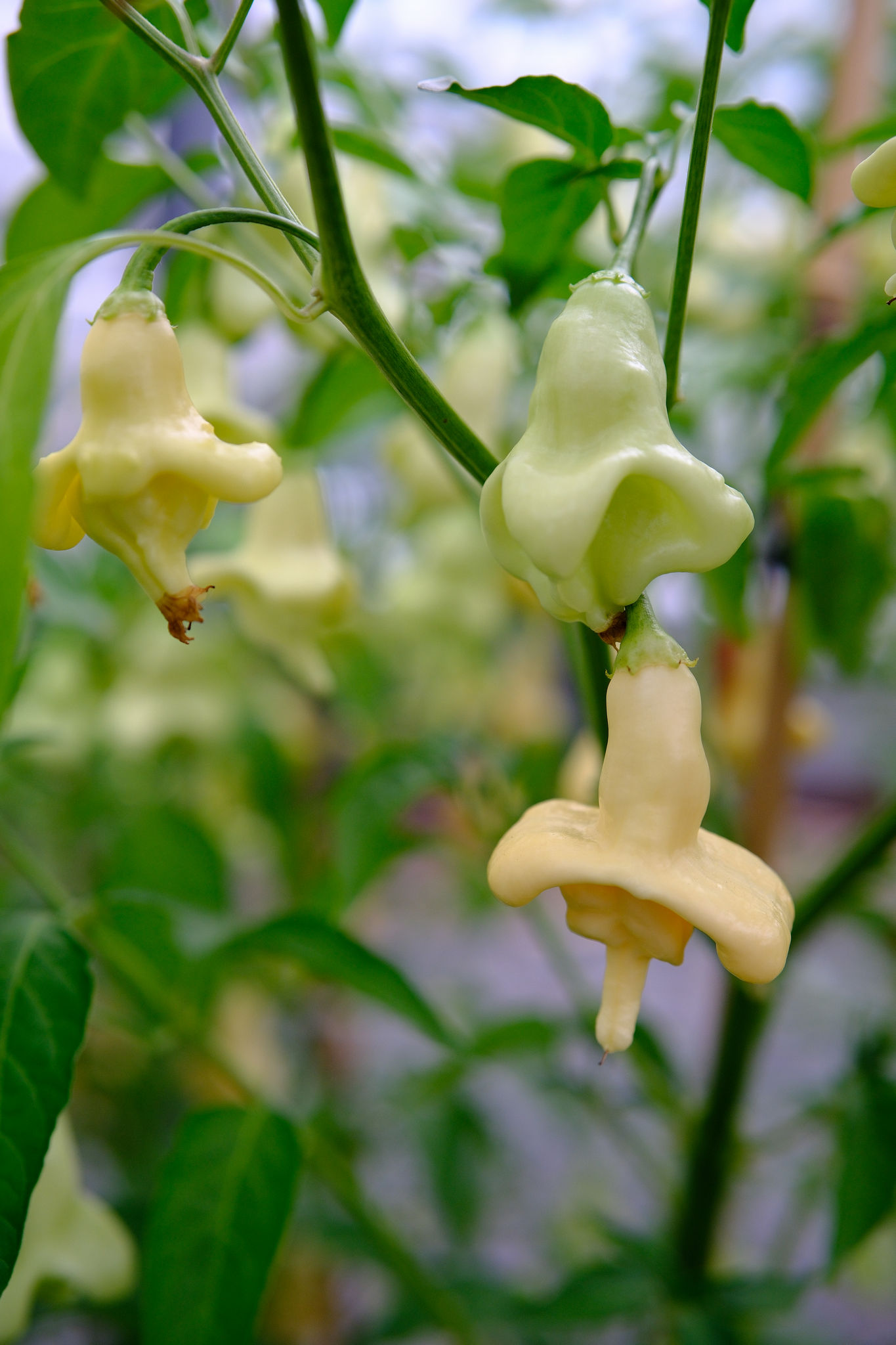 Plody: Podlouhlé, soudečkovité, úhledně zaoblené s hladkým povrchem. Tvarově prakticky totožné s odrůdou Pimenta da Neyde. Jsou asi 4-7 cm dlouhé a 1,5 cm široké. Zprvu jsou zelené s černými přelivy, následně zrají do krémově bílé barvy s…