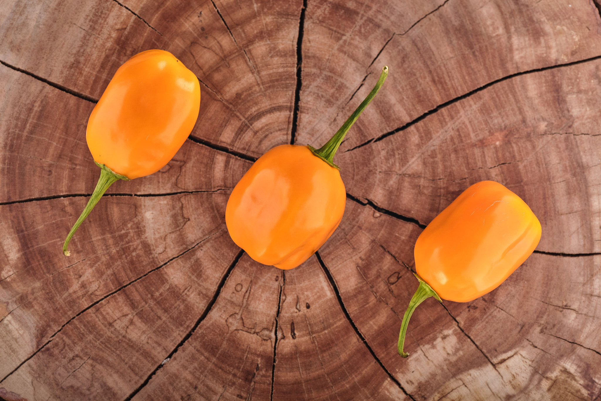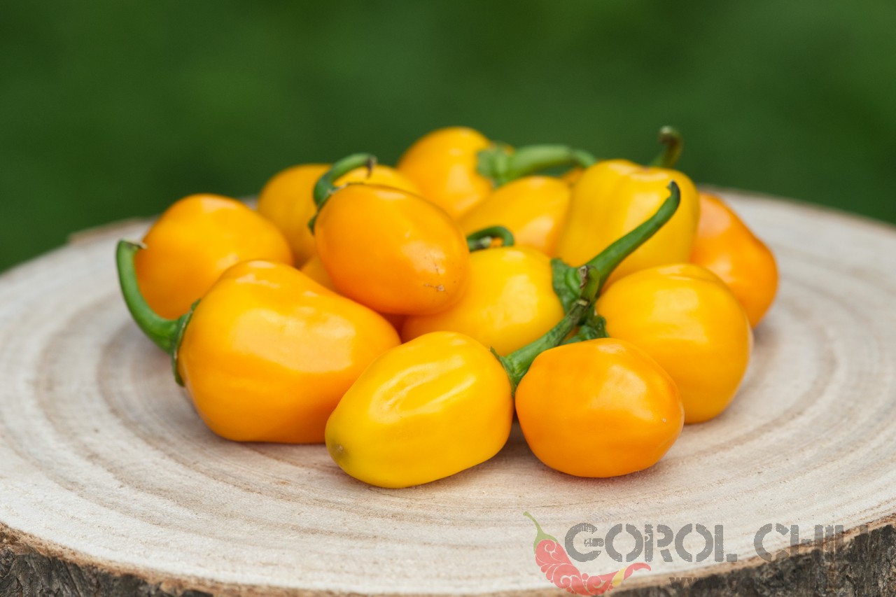 Plody: Menší, soudečkovité, na první pohled připomínající zmenšenou Morugu. Zprvu jsou tmavě zelené, později zrají do svítivě červené barvy.  Chuť a pal: Plody jsou ovocné a nezvykle sladké, doprovázené velmi agresivním kořeněným aroma.…