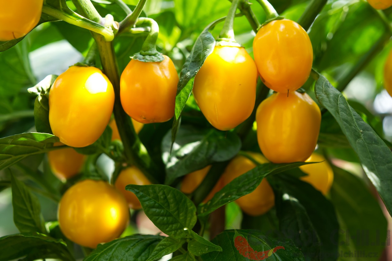 Plody: Soudečkovité, někdy téměř kulaté, okolo 2 cm v průměru. Zprvu jsou tmavě fialové až zcela černé, následně zrají přes světle fialovou do tmavě hnědo-červené barvy. Chuť a pal: Chuť je typická pro druh C. chinense, sladká, ovocná s…