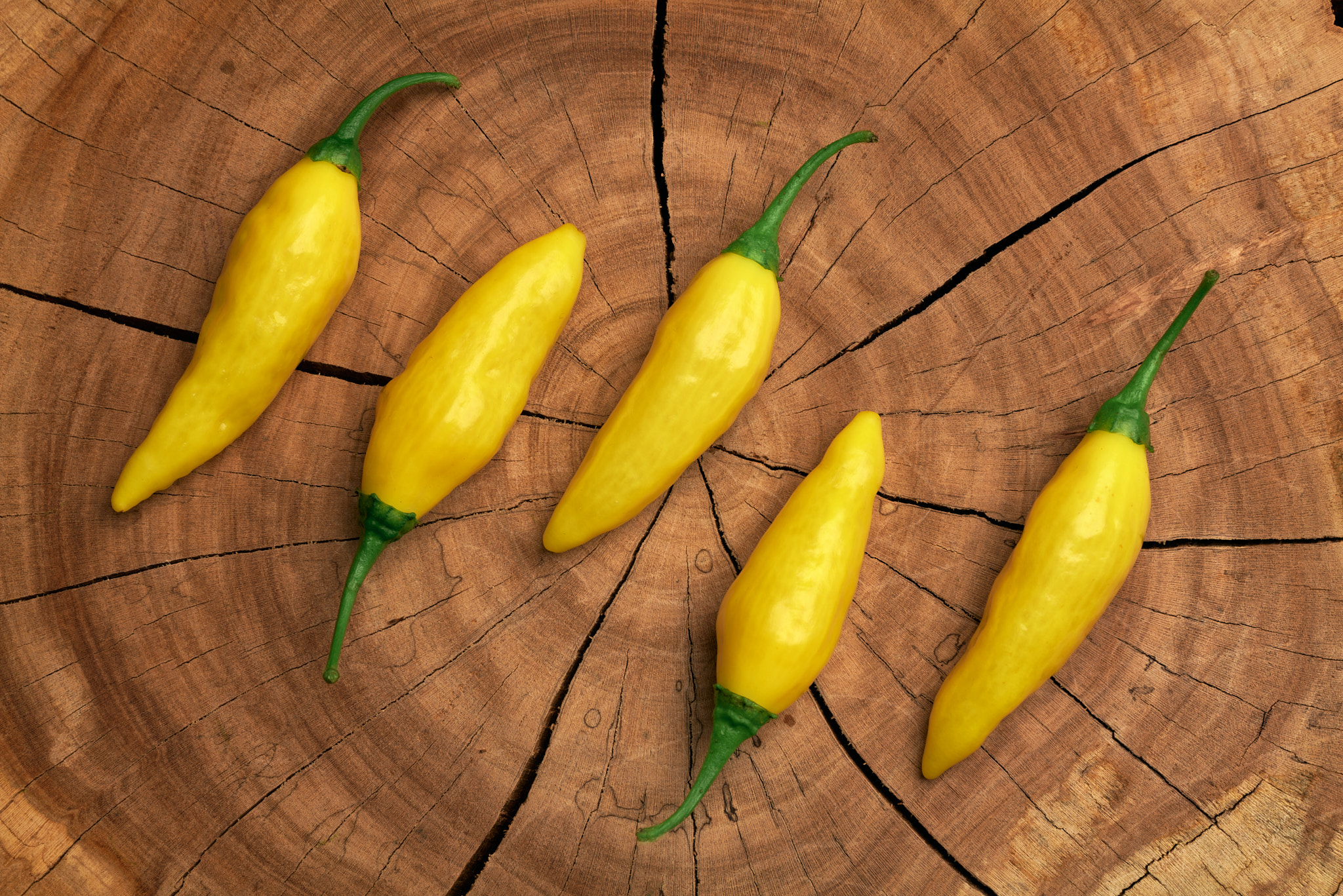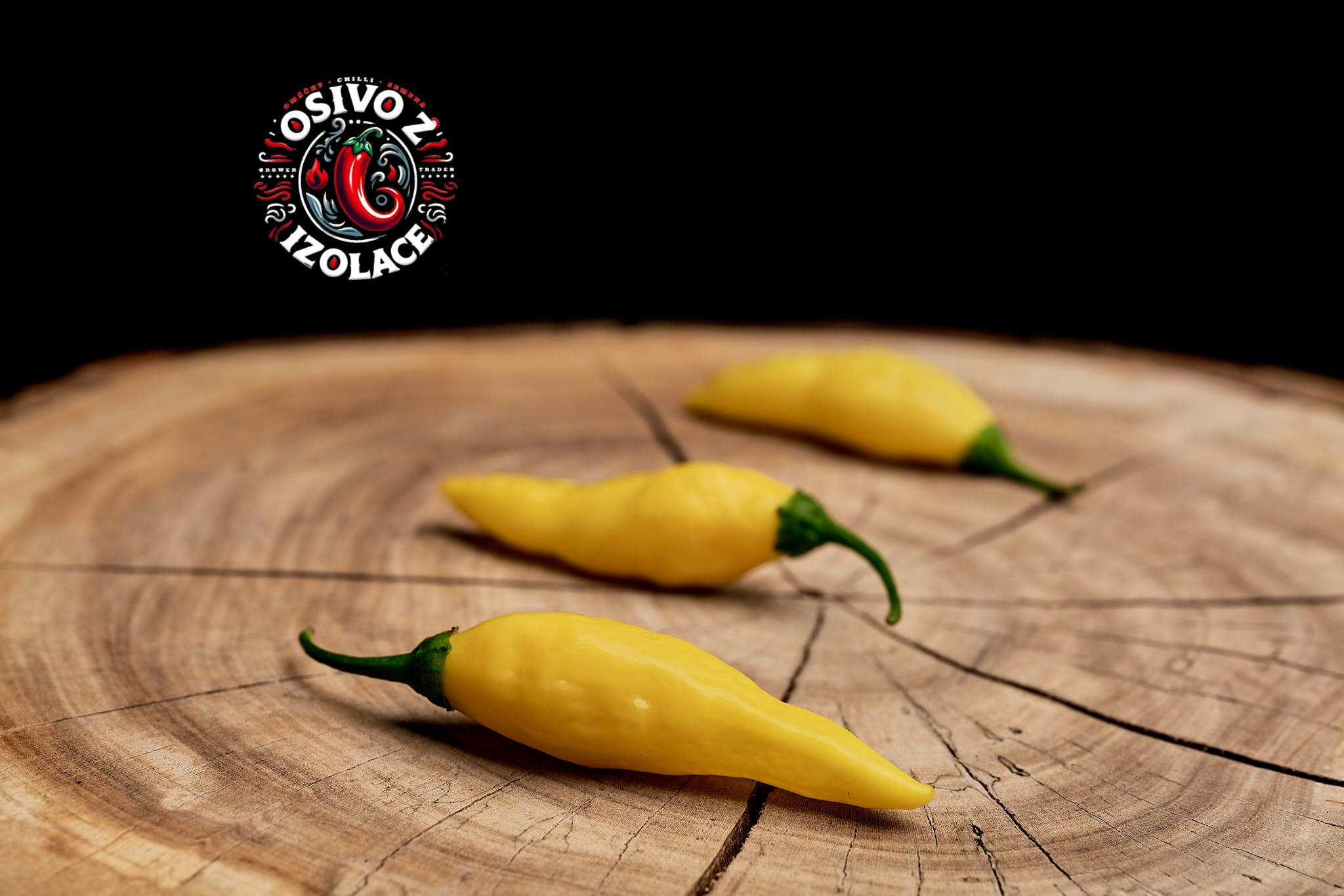 Plody: Středně velké, protáhlé a úzké, s tenkou stěnou, typické pro C. baccatum (známé jako Aji). Plody jsou kónické a často mírně zvlněné, dosahují délky 6–10 cm a šířky 1,5–2 cm. Zrají z jasně zelené do zářivě zlatavě žluté barvy. Jsou velmi křupavé a šťavnaté.