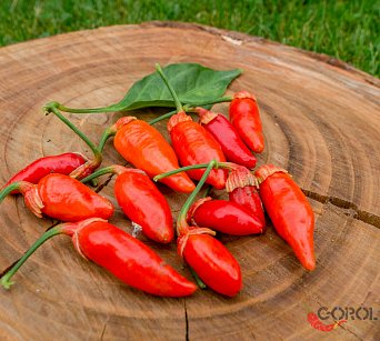 Plody: Robustní, spíše podlouhlé a silně zvlněné. Dorůstají délky okolo 6-7,5 cm a v průměru kolem 2,5-3,5 cm. Zprvu jsou zelené, následně zrají do svítivě červené barvy.  Chuť a pal: Plody se vyznačují výraznou ovocnou chutí a palčivým…