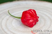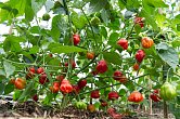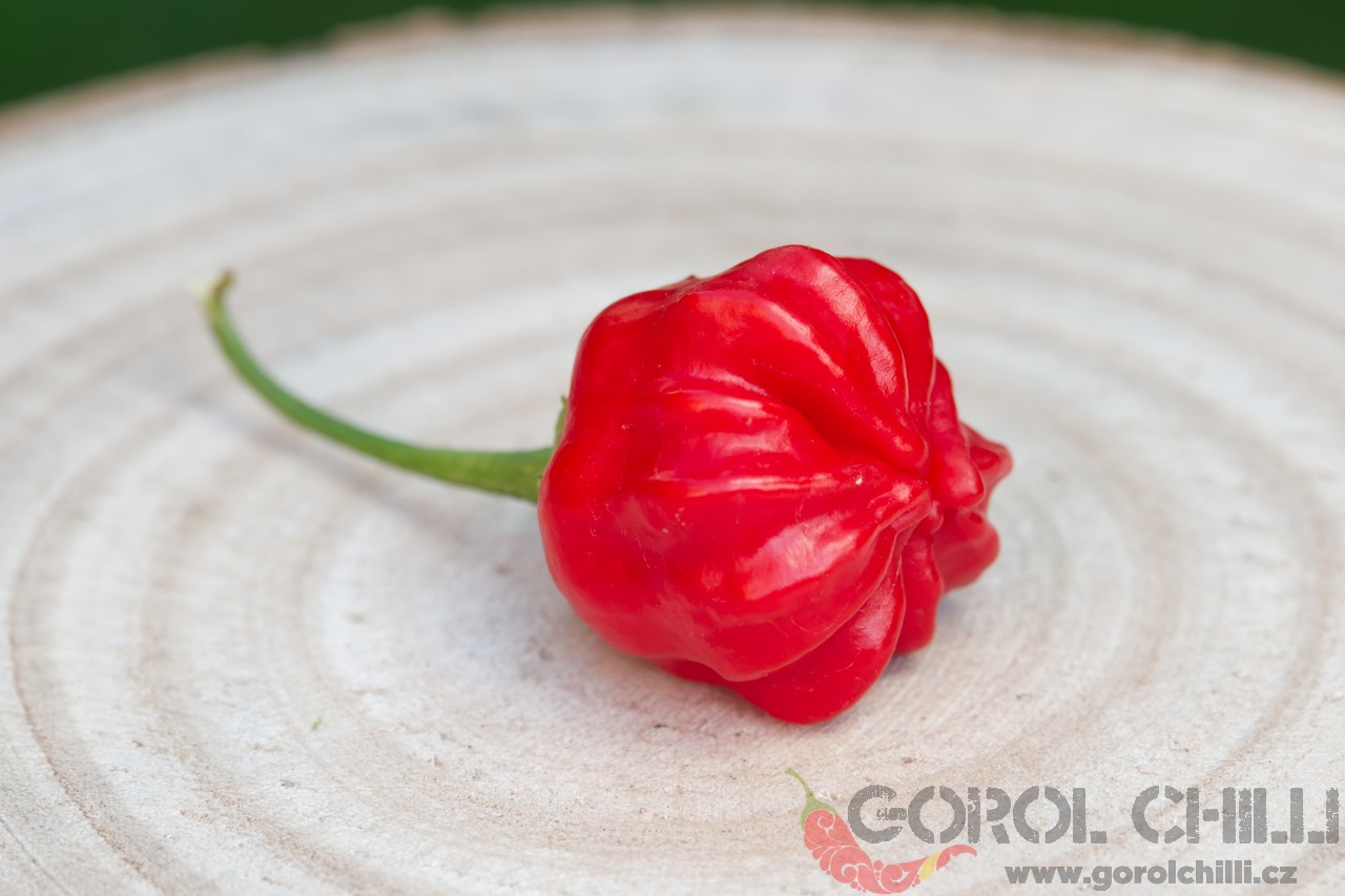 Plody: Zavalité, zvonkovité a mírně podélně žebrované, asi 4-5 cm dlouhé a okolo 4 cm široké. Zprvu jsou zelené, následně zrají do spíše tmavšího odstínu červené barvy. Váha plodů se pohybuje kolem 8-10 g.