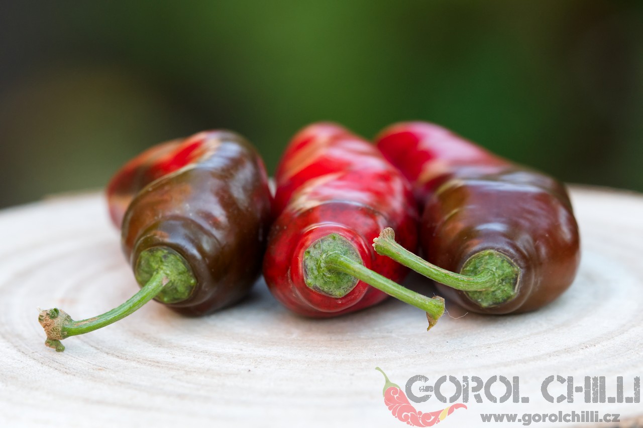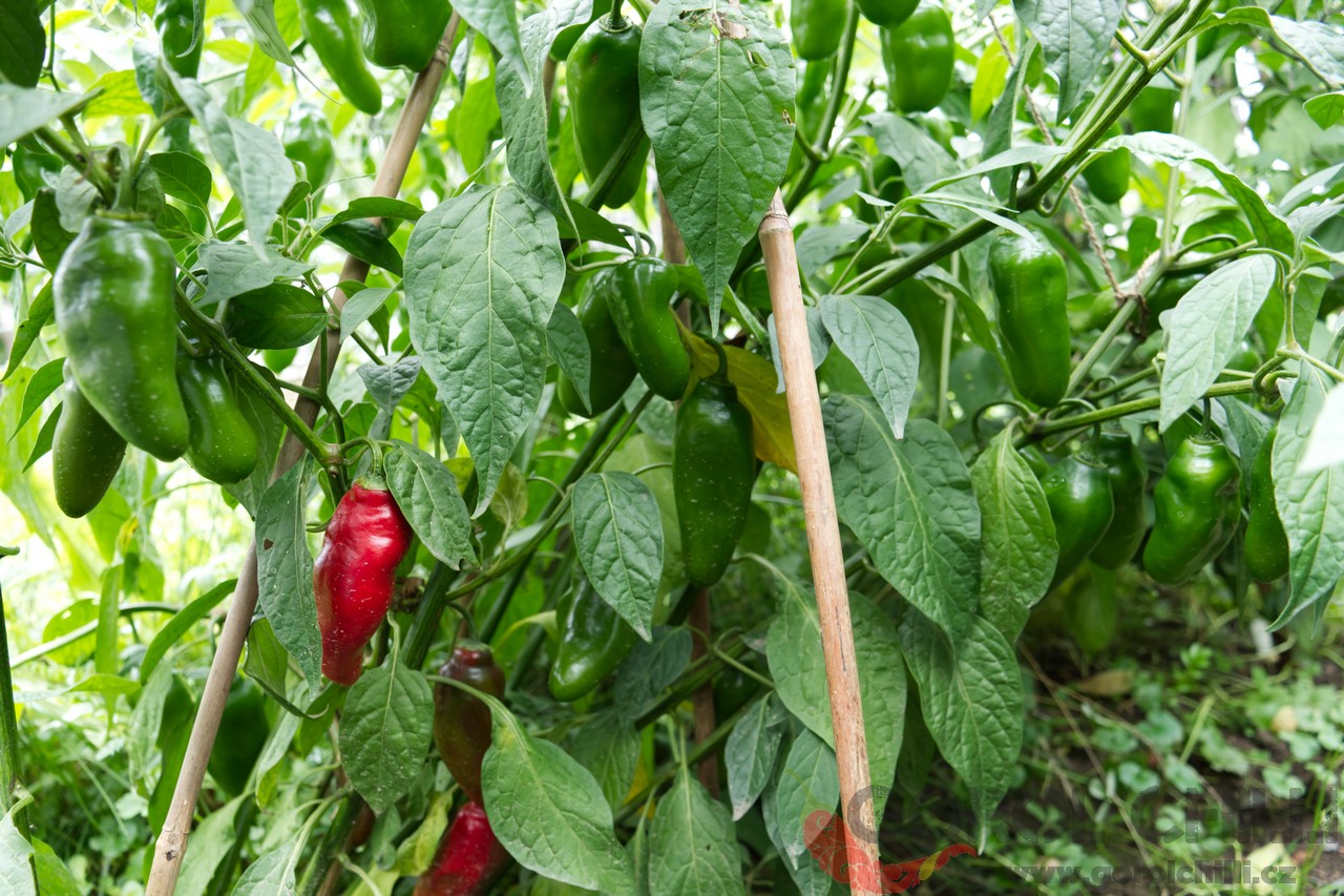 Plody: Podlouhlé, robustní a velmi masivní. Zpravidla okolo 10-13 cm dlouhé a 2-3 cm široké. Zprvu jsou zelené, následně zrají do červené barvy, přičemž často dozrávají částečně a na některých místech zůstávají tmavě zelené. Kultivary druhu C. pubescens mají černě zbarvená semena.