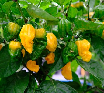Plody: Podlouhlé, úzké a velmi hladké. Paradoxně se příliš nepodobá ani jednomu z rodičů. Plody zrají ze zelené přes žlutou a oranžovou do červené.