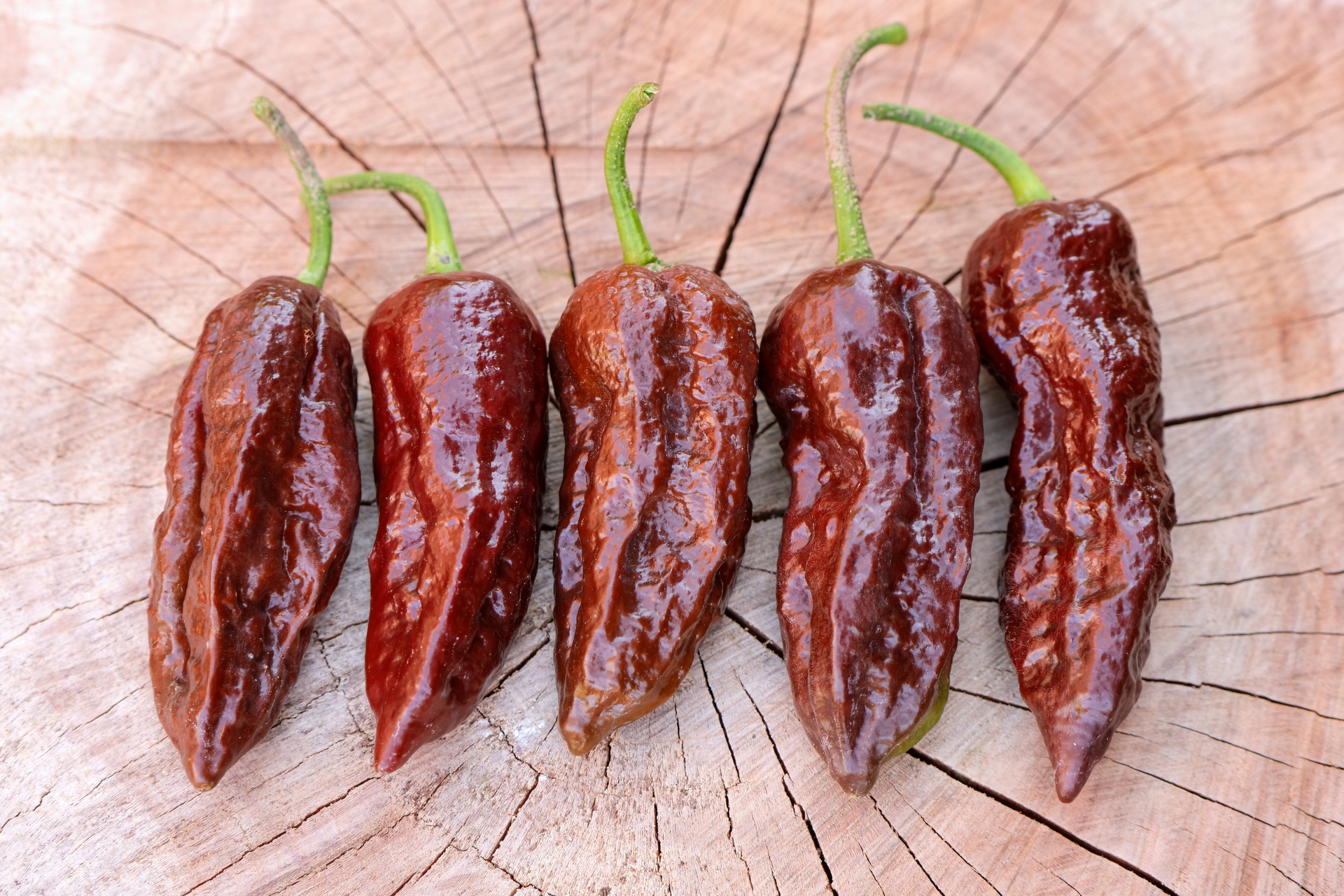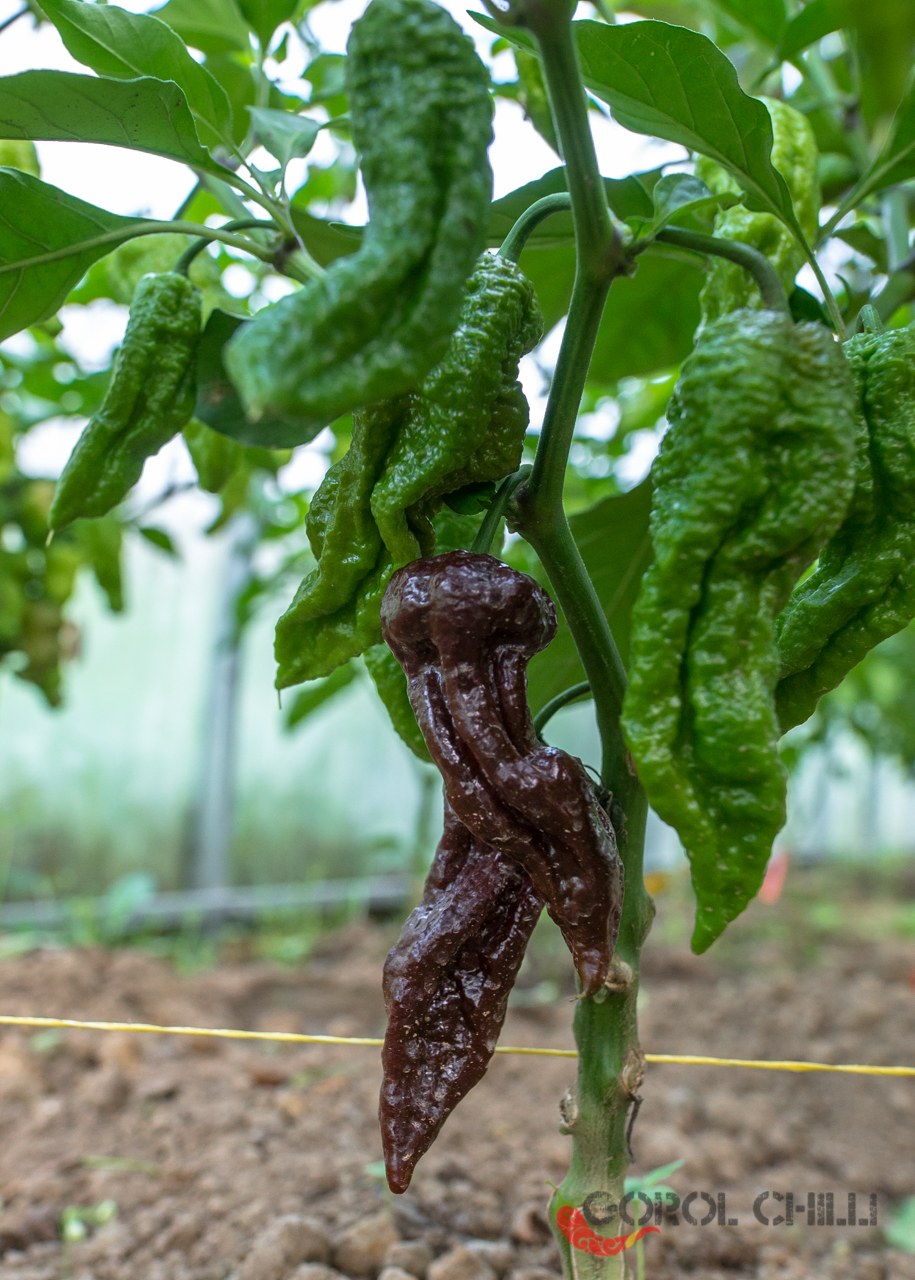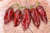 Plody: Podlouhlé, na průřezu kulaté, mírně hrbolaté se silnou stěnou. Zrají z tmavě zelené do červené barvy. Chuť a pal: Chuť je ovocná, mírně kořeněná s palčivým aroma. Pal je velmi vysoký, rozhodně přesahuje 1 milion SHU. Rostlina:…