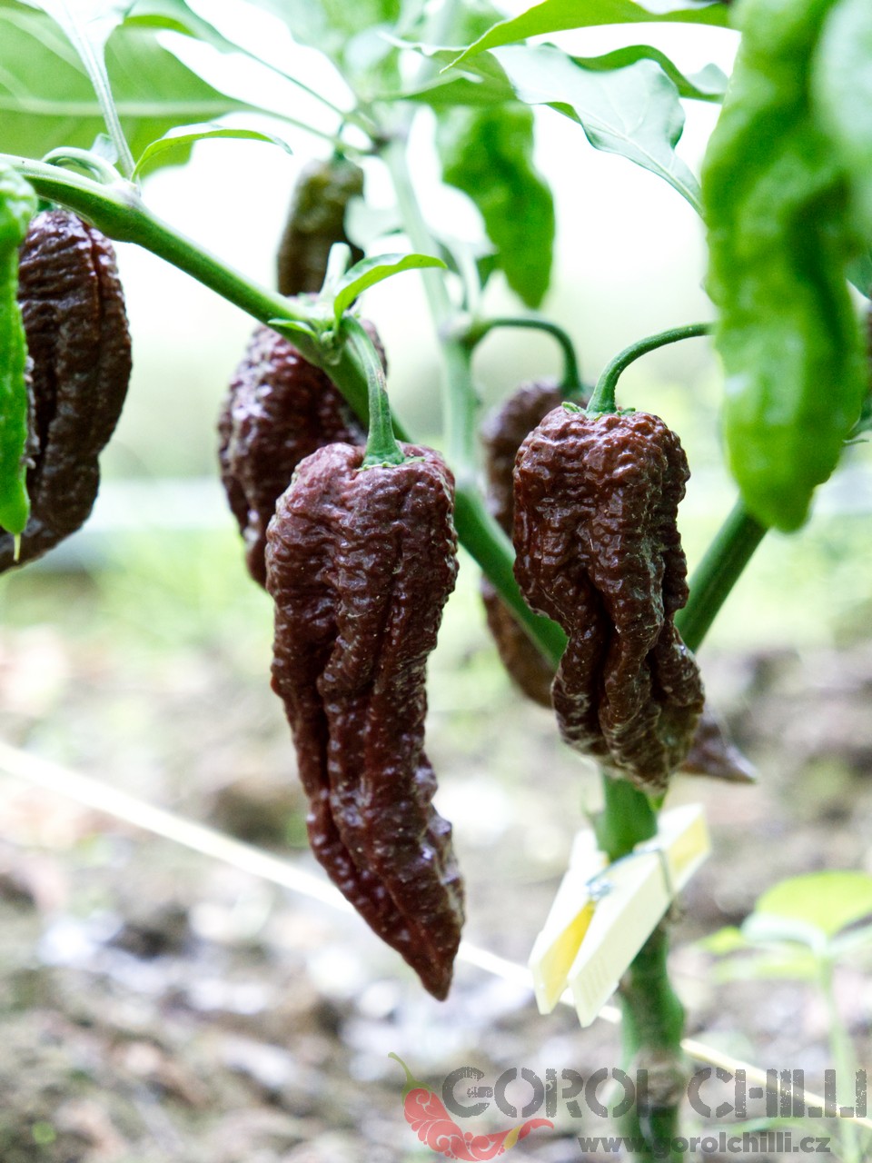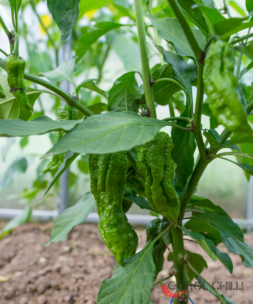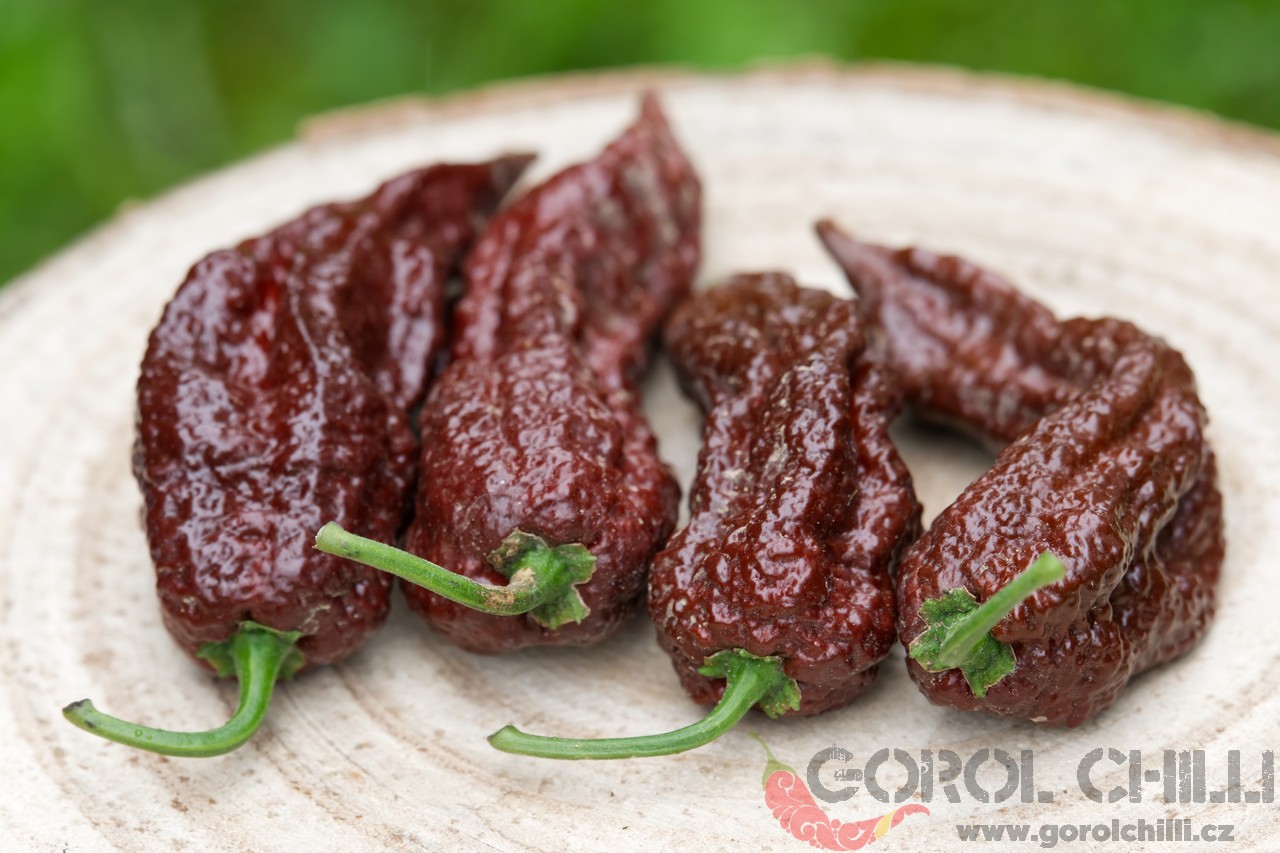 Rostlina: Spíše středně vysoký až vyšší keřík dorůstající výšky okolo 0,8-1,2 metru a průměru koruny okolo 0,8-1 m. Plody nasazuje jednotlivě i ve dvojicích, což poskytuje vysoký výnos typický obecně pro okruh Bhut Jolokia.