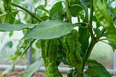 Plody: Robustní, podlouhlé, velmi pokroucené a se silně zvrásněným povrchem. Měří okolo 6-9 cm na délku a 2,5-4 cm na šířku. Zprvu jsou zelené, následně zrají přes oranžovou do červené barvy.  Chuť a pal: Jeden z chuťově nejlepších…