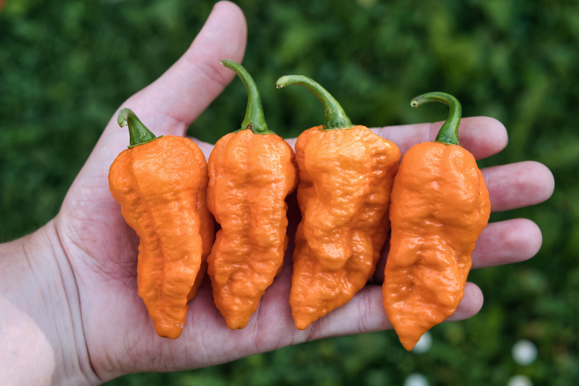 Plody: Moruga na steroidech. Plody jsou robustní, soudečkovité a s extrémně krabatým povrchem. Dorůstají pěkných rozměrů, asi 4-5 cm do délky a okolo 5 cm v průměru. Zprvu jsou tmavě zelené, následně zrají do červené barvy.  Chuť a pal:…