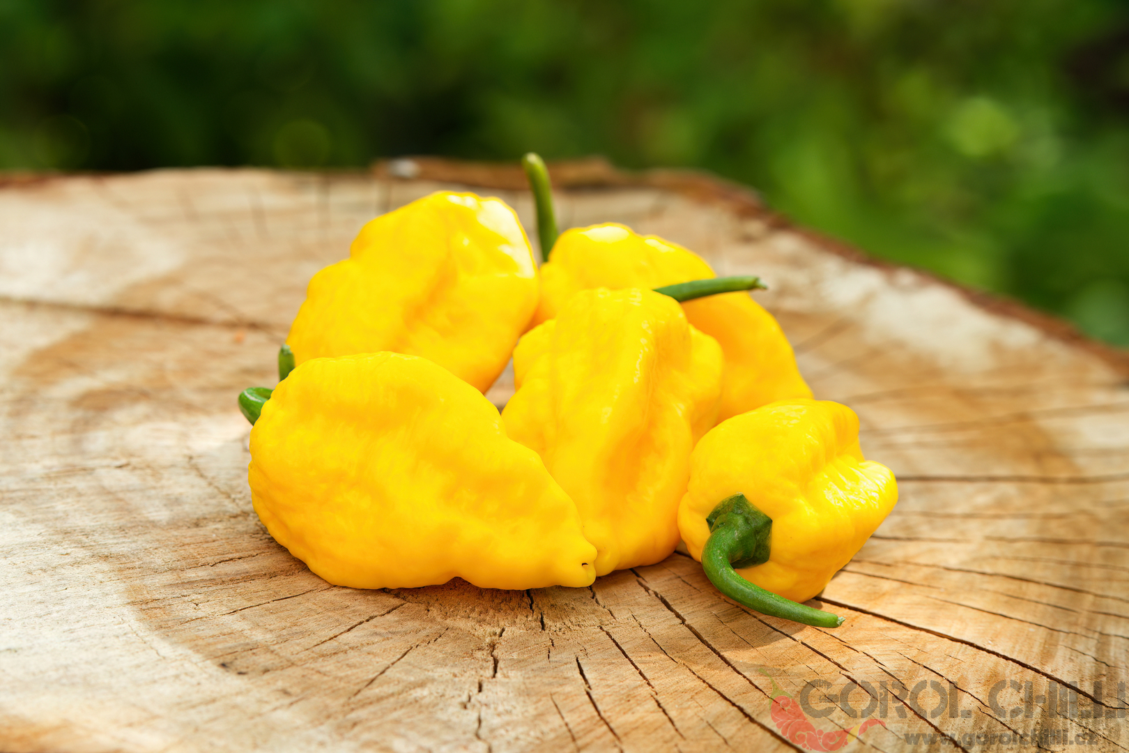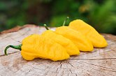 Plody: Podlouhlé, kuželovité, dorůstající okolo 5-7 cm délky a asi 2-3 cm v průměru. Zrají ze zelené do svítivé žluté barvy.  Chuť a pal: Papriky mají velmi jemnou ovocnou chuť s exotickým kořeněným aroma. Pálivost se pohybuje okolo 200…
