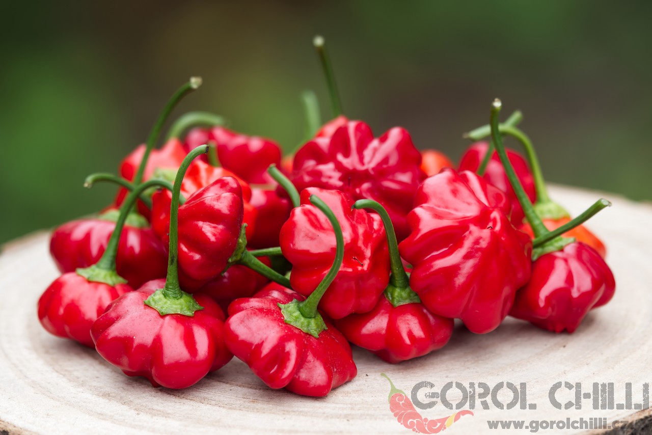 Plody: Robustní, soudečkovité a extrémně zvrásněné. Dorůstají délky okolo 4-5 cm a porobného průměru. Zprvu jsou tmavě zelené, následně zrají do sytě červené barvy.  Chuť a pal: Plody mají silně kořeněnou chuť s ovocnými tóny s palčivým…