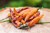 Plody: Robustní, soudečkovité a s nápadným žebrováním. Dorůstají délky okolo 5-6 cm a asi 3-4 cm v průměru. Zrají ze zelené do sytě červené barvy.  Chuť a pal: Plody se vyznačují nasládlou ovocnou chutí s kořeněným exotickým aroma.…