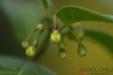 Plody: Spíše drobné kuličky dorůstající v průměru okolo 1 cm, výjimečně více. Zprvu jsou světle zelené až zelenobílé, později zrají do sytě oranžové barvy.