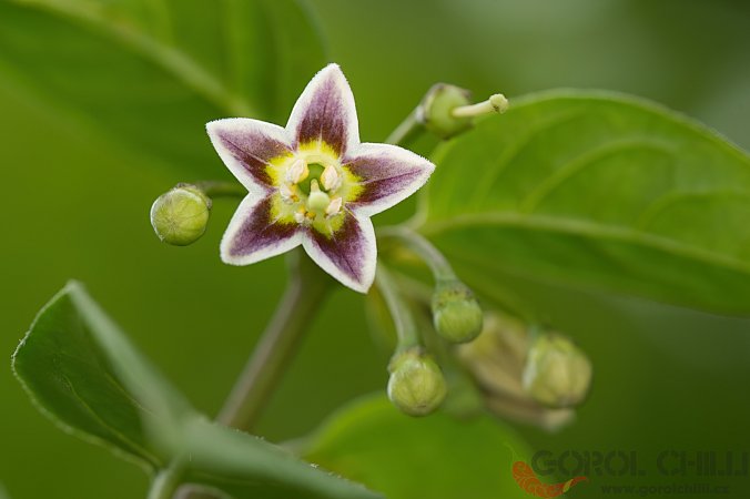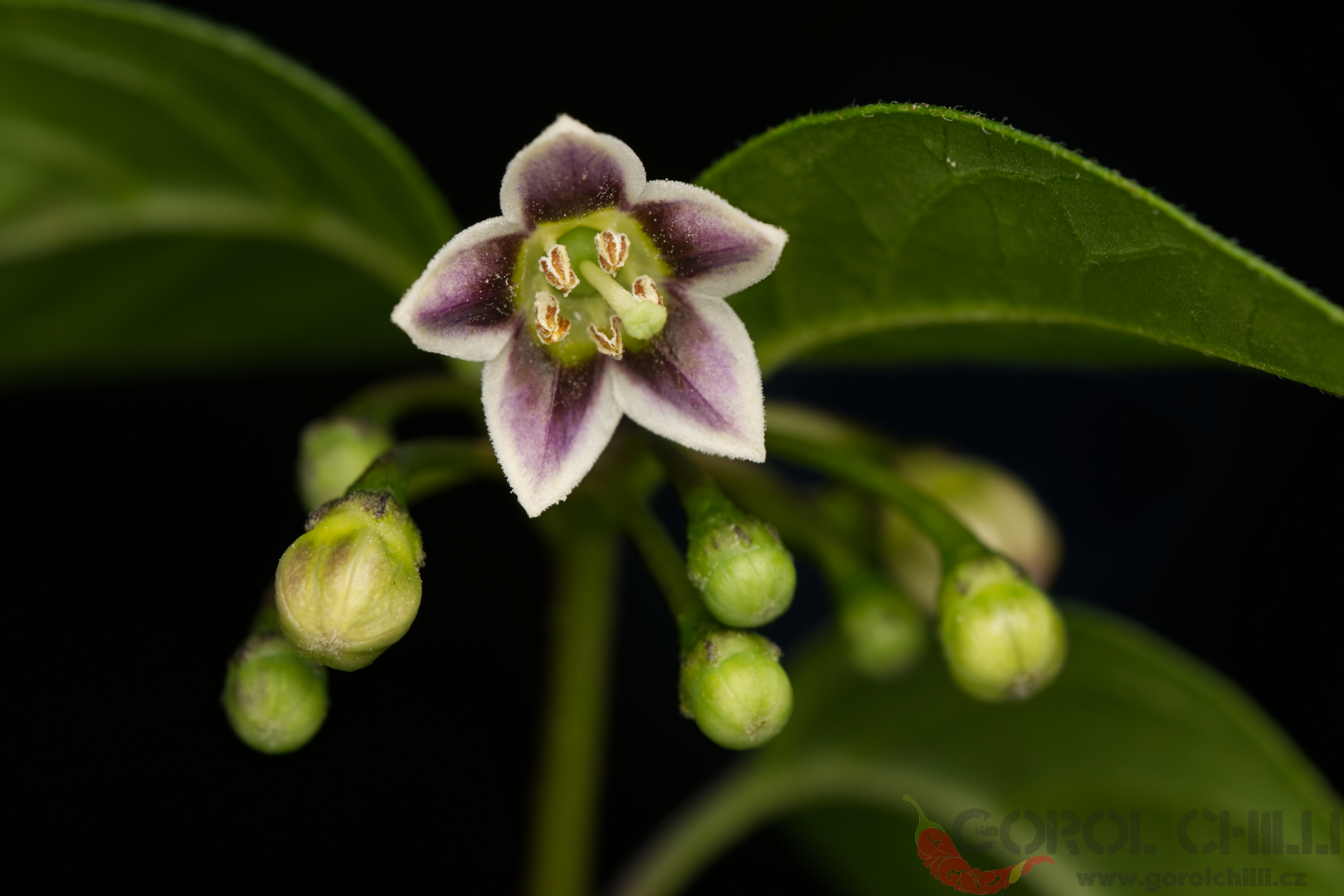 Plody: Podlouhlé, úzké s lehce krabaté. Zprvu jsou světle zelené až bělavé, později zrají do krásné karamelové barvy. Dorůstají délky okolo 8-11 cm a průměru do 2 cm. Chuť a pal: Chuť je typická pro indické kultivary typu Jolokia,…