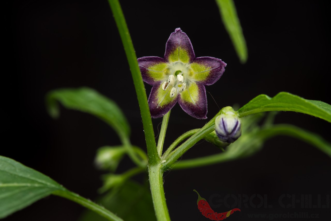 Rostlina: Relativně vysoký keř dorůstající prvním rokem výšky okolo 1,5 metru. Díky bohaté násadě bočmích větví tvoří dojem jakéhosi křoví. Květy mají zelený střed a tmavě fialové okraje a vyrůstají v trsech po 2-3 kusech. Oproti většině ostatních kultivarů C. eximium jsou korunní lístky spíše zaoblené.