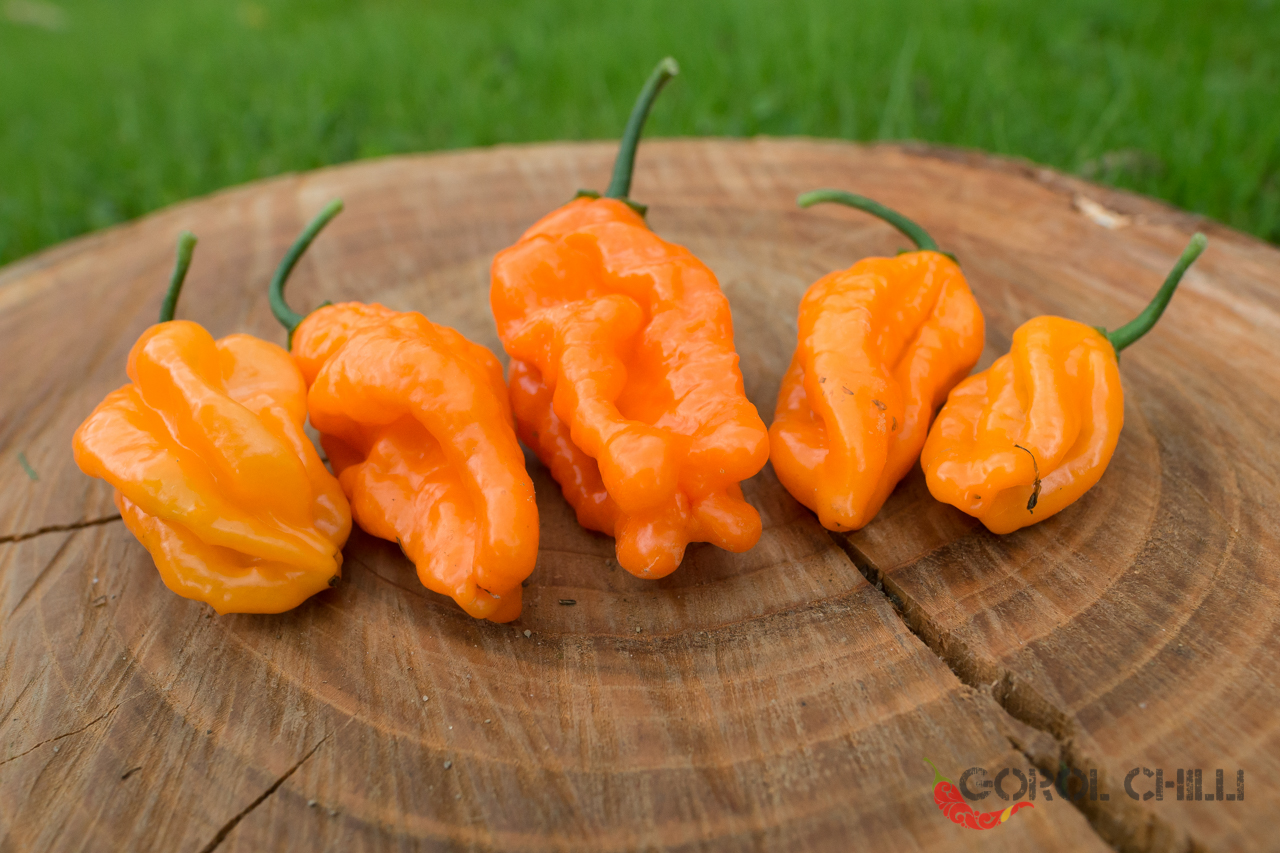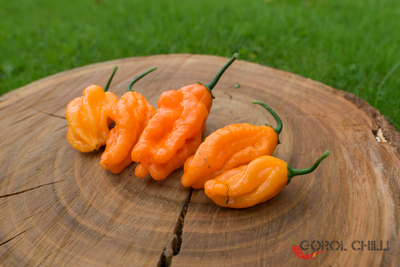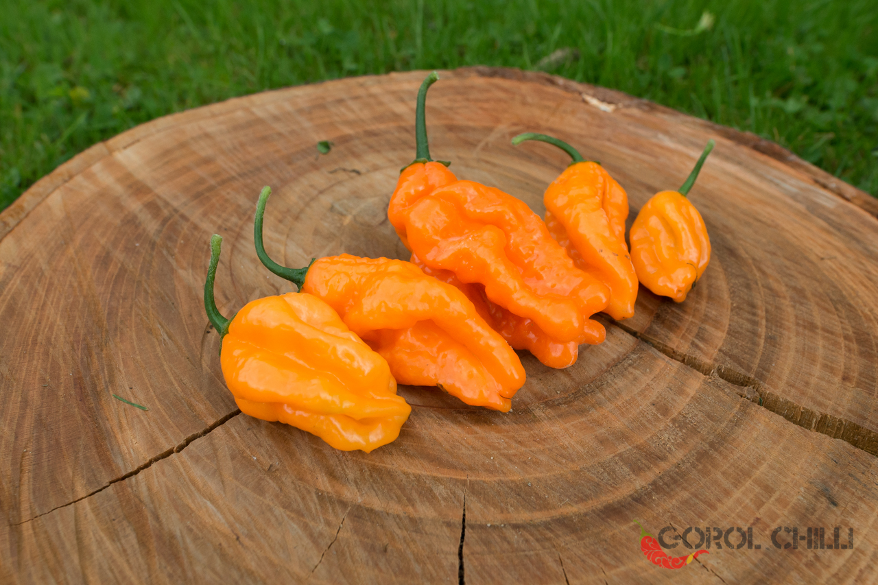 Původ: Jedná se o hybridní kultivar mezi odrůdami Carbon Indian Bhut Jolokia, Yellow 7 Pot a Habanero Orange. Bohužel nenzáme tvůrce ani aktuální generaci, kultivar je však již stabilní.