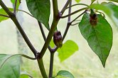 Plody: Podlouhlé, úzké a s hladkým povrchem. Dorůstají délky okolo 6-8 cm a průměru do 1 cm. Zprvu jsou zelené, později zrají do červené barvy. Pokud jsou na rostlině ponechané déle, plody se dále zbarví do karmínově rudé barvy, stopky…