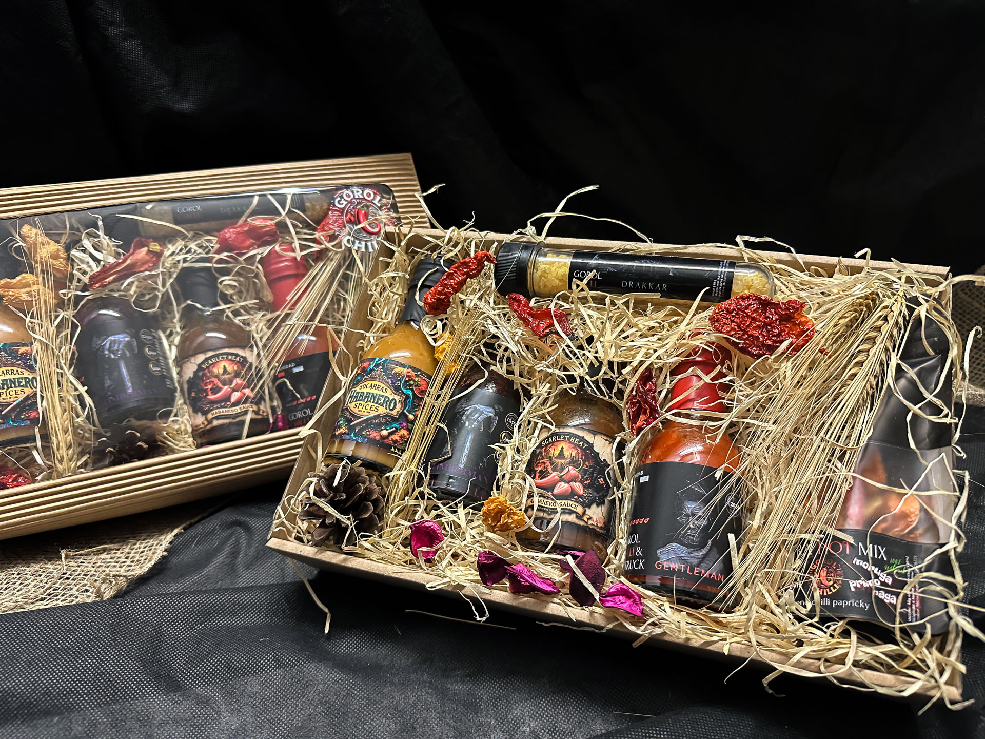 Hledáte ten pravý dárek? Objevte naši exkluzivní sbírku chilli produktů, které reprezentují ty nejlepší a nejžádanější chutě z celého světa. Tyto prémiové sady obsahují omáčky, z nichž každá je pečlivě vyrobena s důrazem na charakteristický profil a špičkovou kvalitu. Ideální balíček pro skutečné gurmány a milovníky ohnivých potěšení.