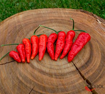 Plody: Podlouhlé, na průřezu kulaté, mírně hrbolaté se silnou stěnou. Zrají z tmavě zelené do červené barvy. Chuť a pal: Chuť je ovocná, mírně kořeněná s palčivým aroma. Pal je velmi vysoký, rozhodně přesahuje 1 milion SHU. Rostlina:…