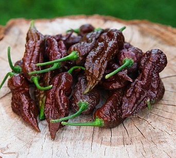 Plody: Masivní, robustní a velmi krabaté. Mohou dorůstat délky až 11 cm a průměru okolo 4 cm. Zprvu jsou tmavě zelené, později zrají do velmi tmavě hnědé barvy. Chuť a pal: Papriky se vyznačují překvapivě ovocnou a příjemnou chutí, kterou…