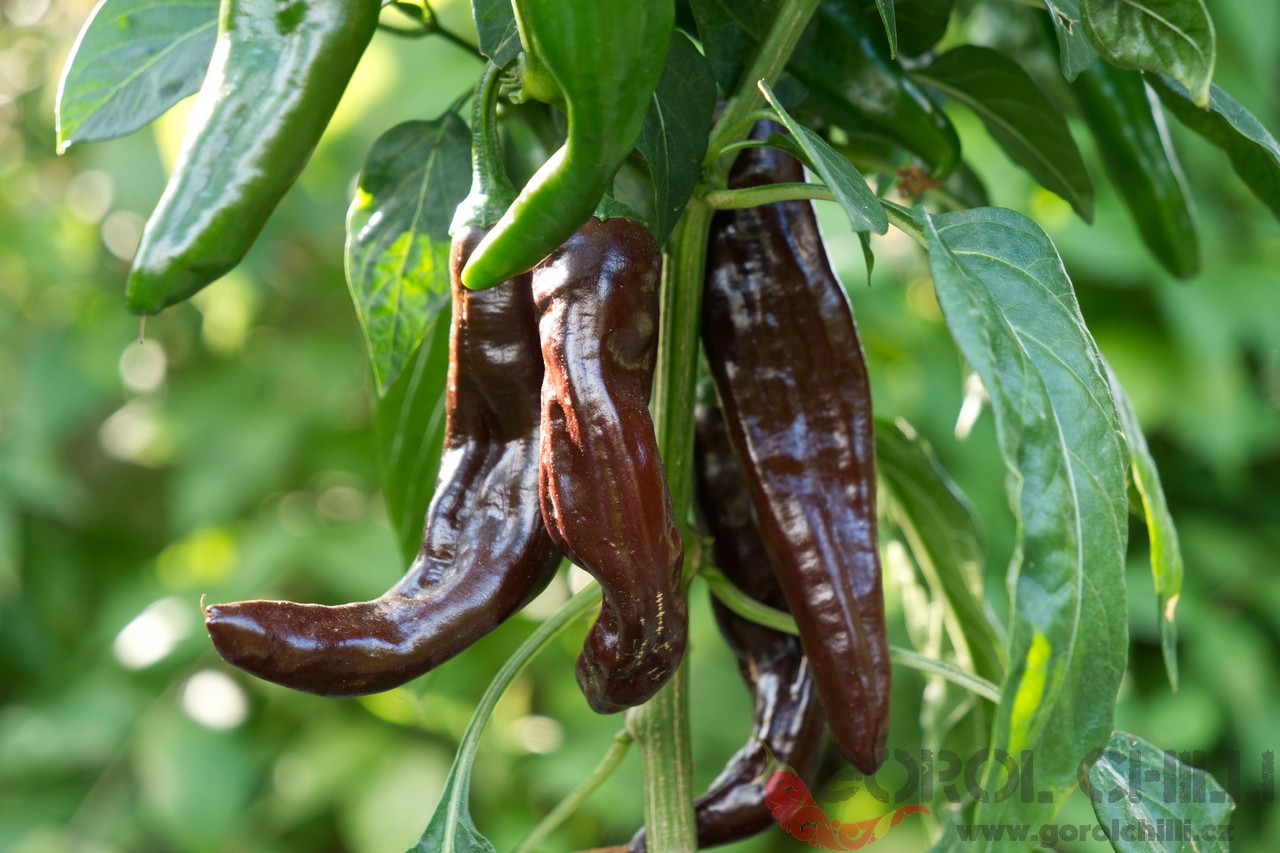 Plody: Podlouhlé, úzké a silně vrásčité. Dorůstají délky okolo 8-11 cm a průměru do 2 cm. Zprvu jsou světle zelené až bělavé, následně zrají do zářivě červené barvy.  Chuť a pal: Papriky vynikají kořeněnou ovocnou chutí, kterou doprovází…