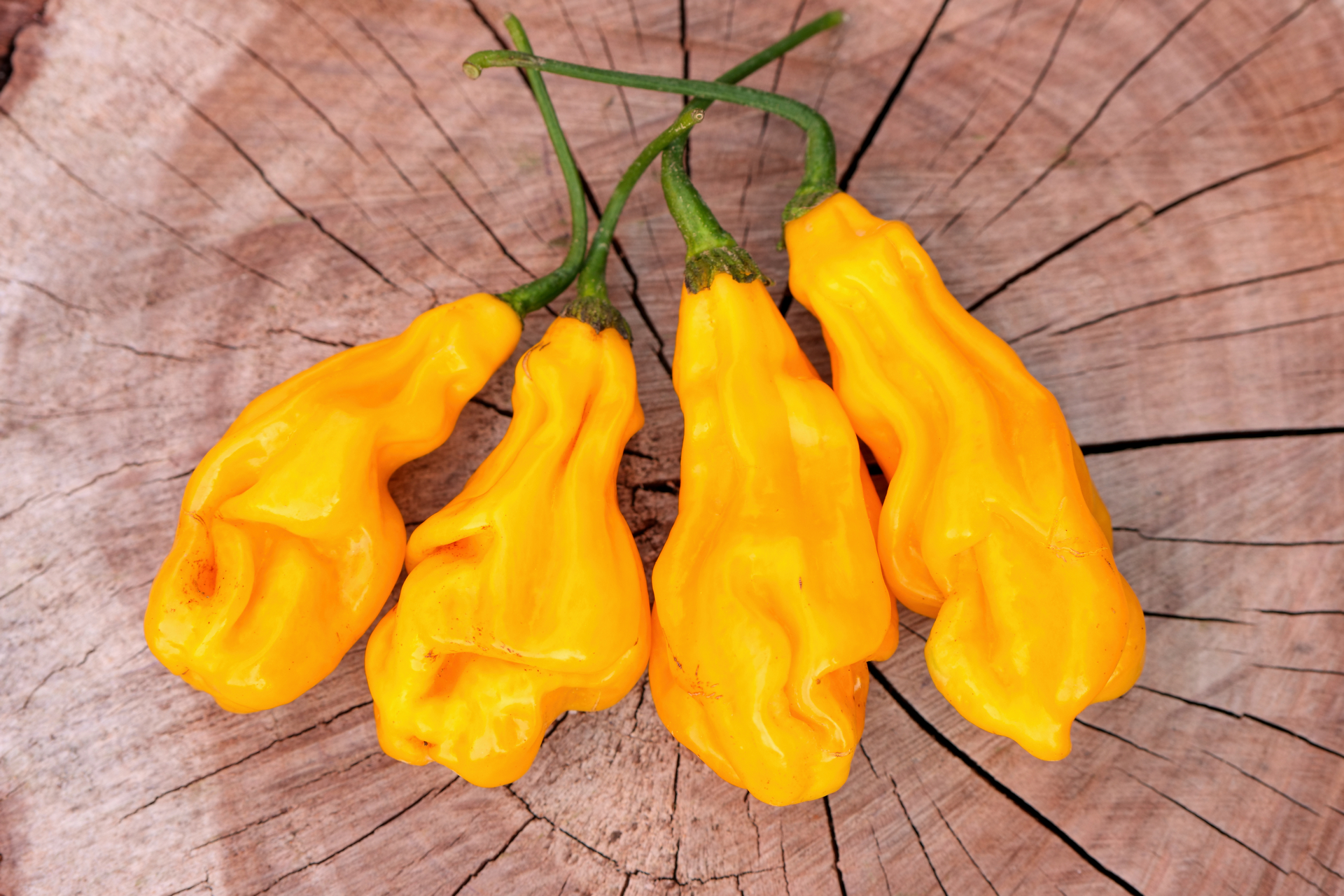 Plody: Robustní, všemožně pokroucené a opravdu extrémně krabaté. Dorůstají délky asi 5-7 cm a průměru okolo 4 cm. Zprvu jsou zelené, později zrají do oranžovo červené až červené barvy.  Chuť a pal: Jedná se o extrémně pálivé odrůdy…