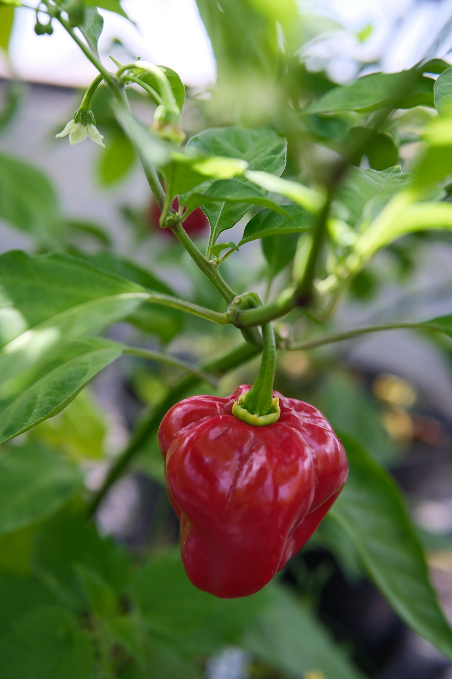 Plody: Soudečkovité, robustní a s výrazným postranním žebrováním. Dorůstají délky 5-6 cm a okolo 3-4,5 cm v průměru. Zrají ze zelené do sytě červené barvy. Tvarově se jedná o jedno z našich nejoblíbenějších Habanero.