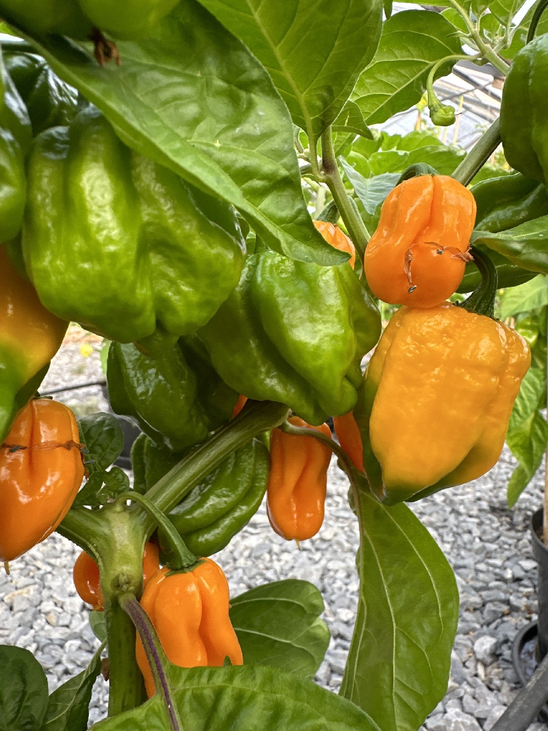 Plody: Robustní, zavalité, svým způsobem připomínají lehce krabaté habanero. Dorůstají délky okolo 5-6 cm a průměru asi 4-5 cm. Zprvu jsou světle zelené, následně zrají do bledě oranžové barvy.  Chuť a pal: Plody se vyznačují jemnou…