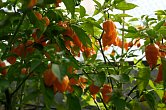 Plody: Soudečkovité, lehce porlouhlé a směrem ke špičce se zužují. Dorůstají délky okolo 5-6 cm a asi 3 cm v průměru. Zprvu jsou světle zelené, následně zrají do bledšího odstínu oranžové barvy.