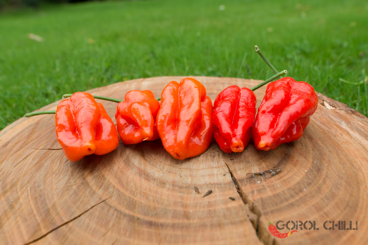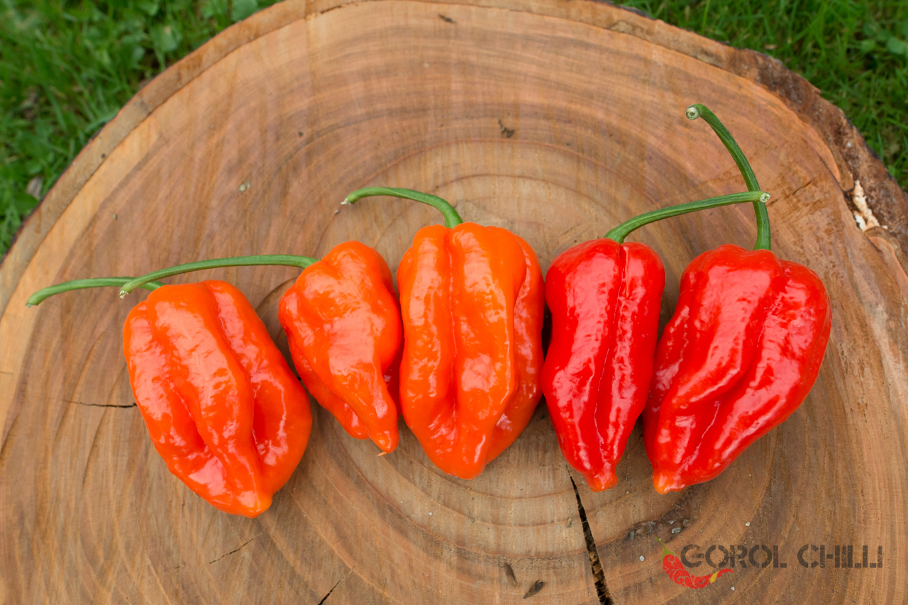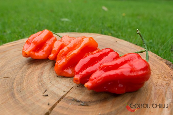 Plody: Soudečkovité, robustní a s výrazným podélným žebrováním. Zprvu jsou zelené, následně zrají přes světle oranžovou do červené barvy. Dorůstají okolo 4-6 cm délky a průměru okolo 2-4 cm.