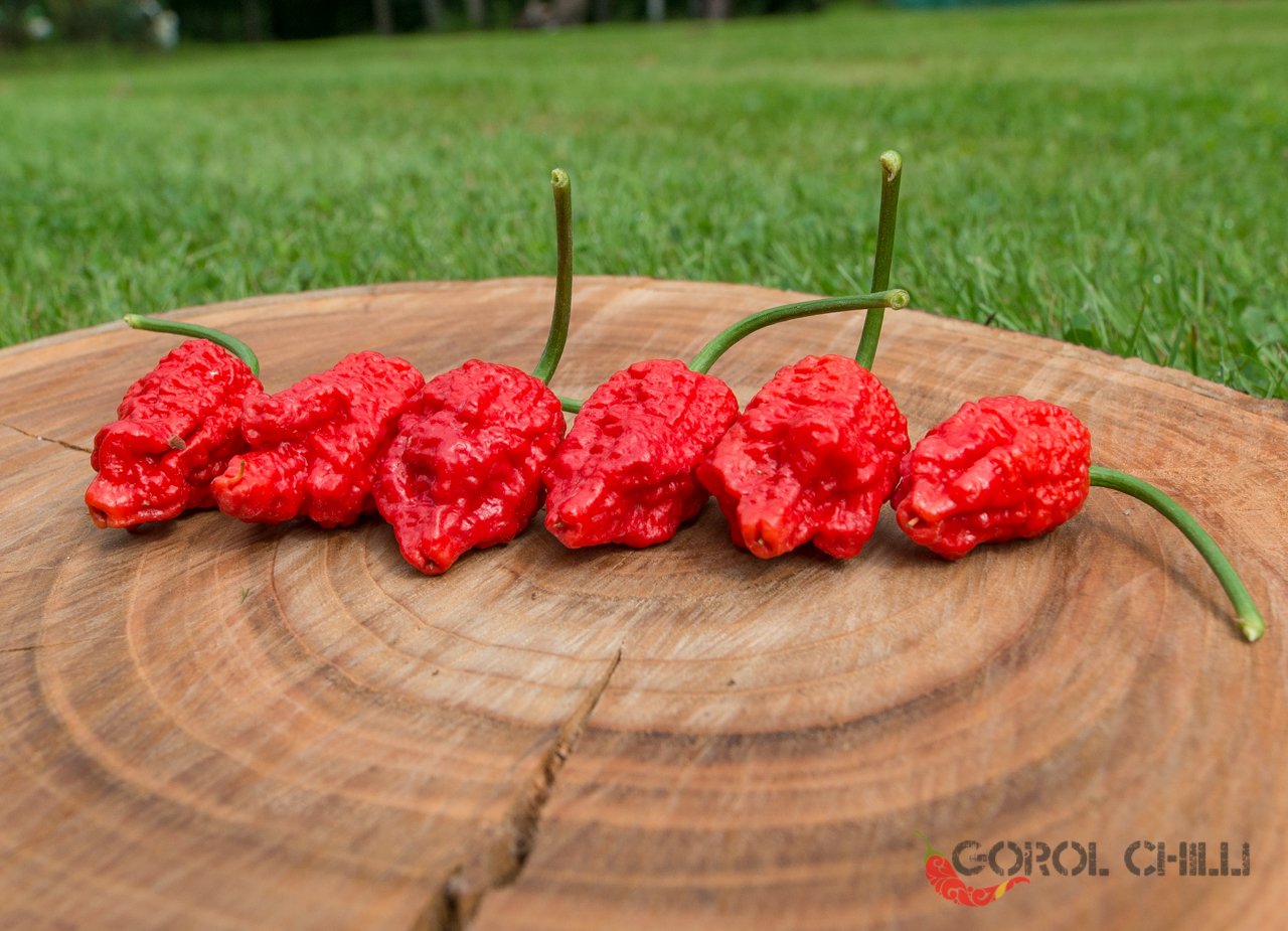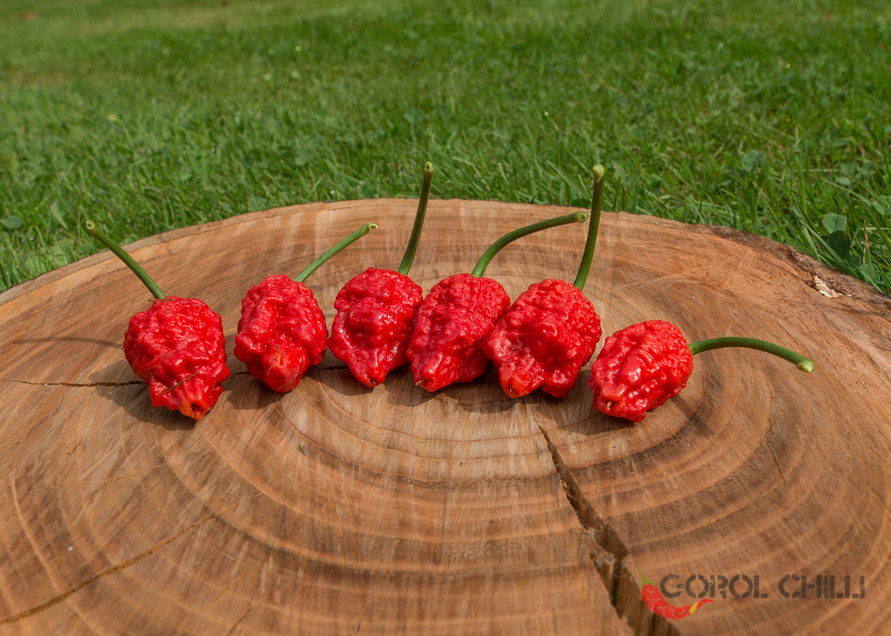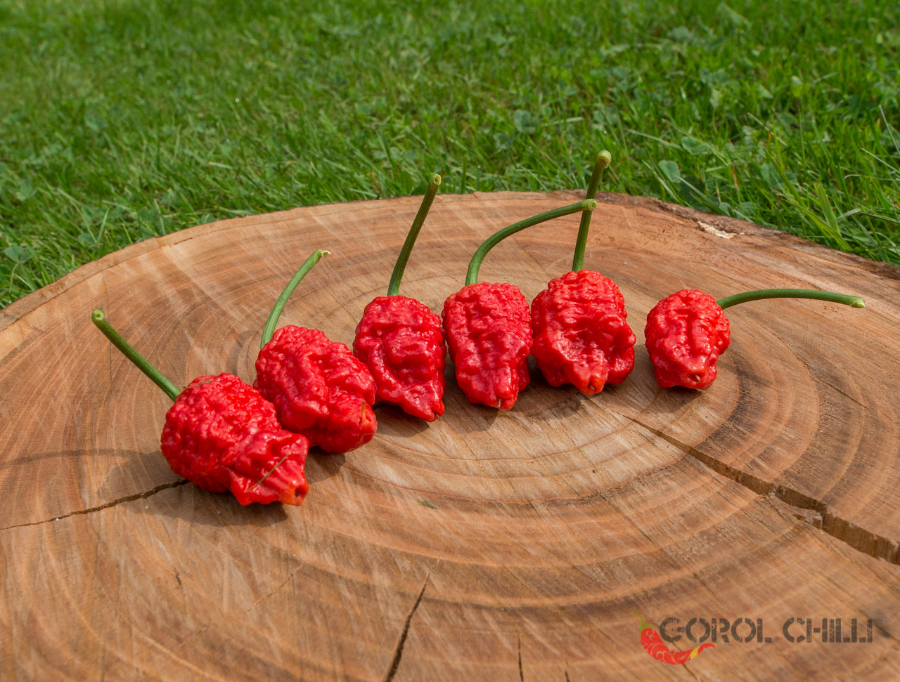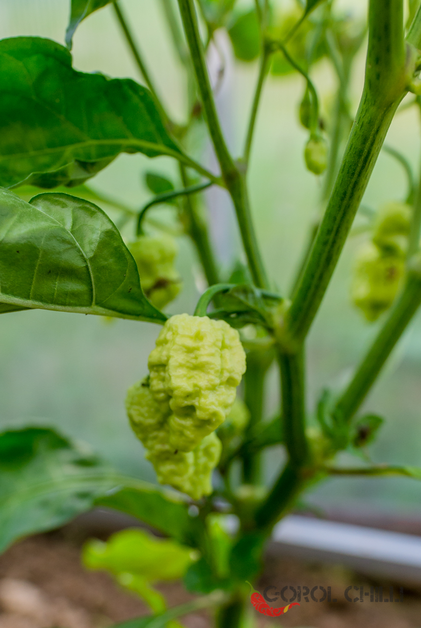 Plody: Moruga na steroidech. Plody jsou robustní, soudečkovité a s extrémně krabatým povrchem. Dorůstají pěkných rozměrů, asi 4-5 cm do délky a okolo 5 cm v průměru. Zprvu jsou tmavě zelené, následně zrají do červené barvy.  Chuť a pal:…