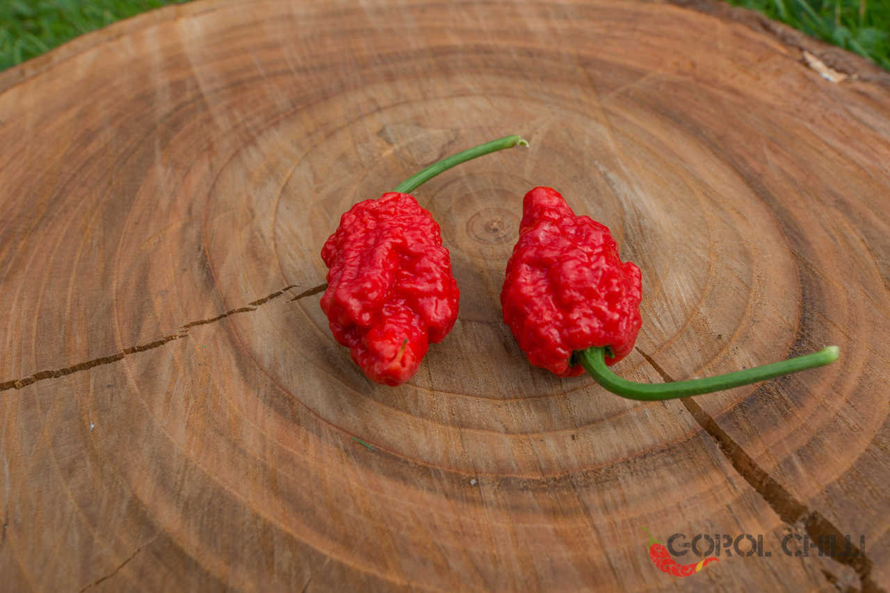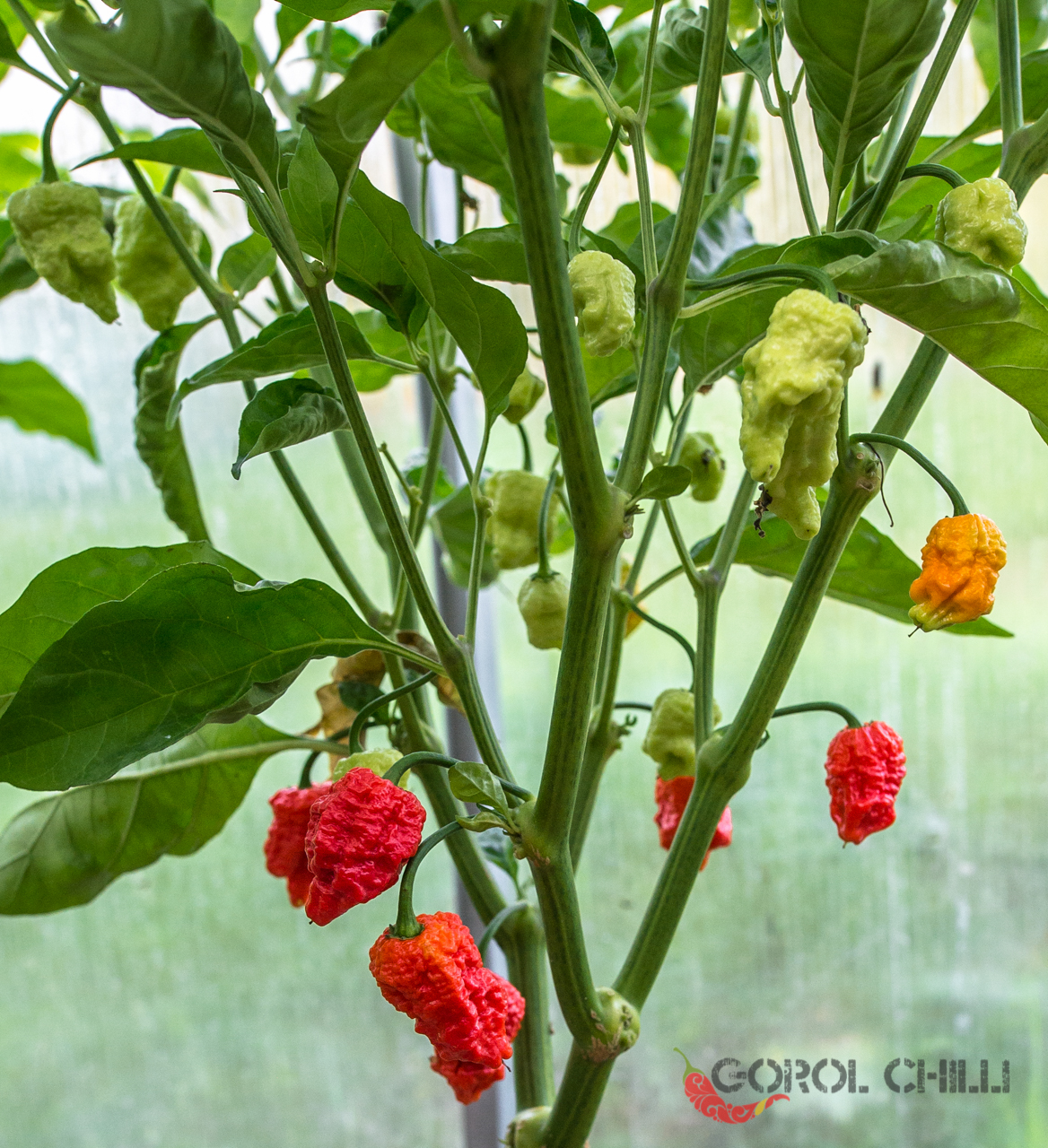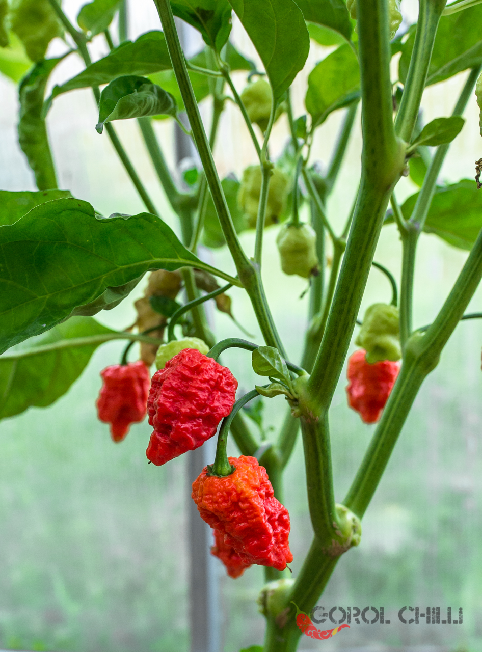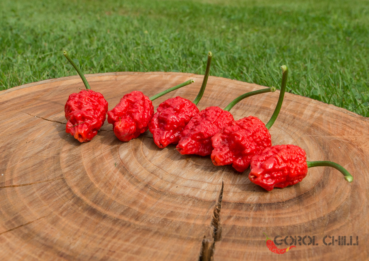 Plody: Moruga na steroidech. Plody jsou robustní, soudečkovité a s extrémně krabatým povrchem. Dorůstají pěkných rozměrů, asi 4-5 cm do délky a okolo 5 cm v průměru. Zprvu jsou tmavě zelené, následně zrají do červené barvy.  Chuť a pal:…
