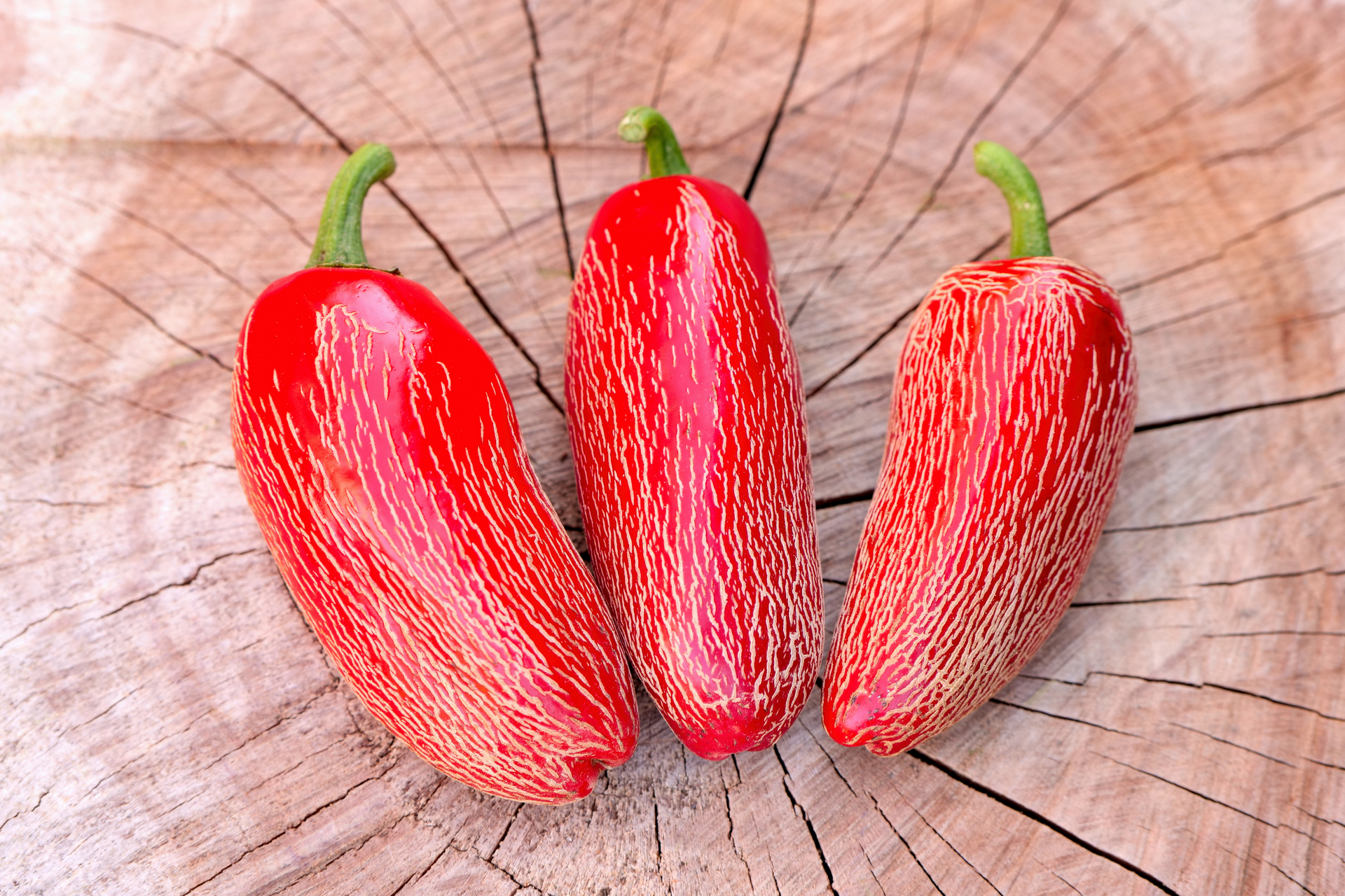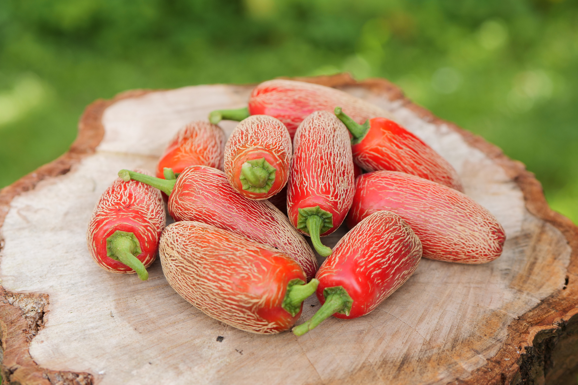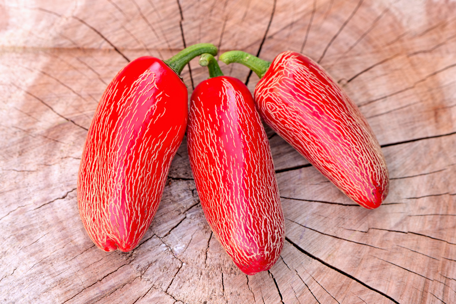 Plody: Jedno z nejkrásnějších Jalapeň na světě. Plody jsou podlouhlé, spíše užší, měří okolo 8-11,5 cm na délku a asi 2-2,5 cm v průměru. Zprvu jsou zelené, následně zrají do svítivé červené barvy. Povrch plodů je protkán neuvěřitelně krásným kornatěním, které jim dodává zcela unikátní vzhled.