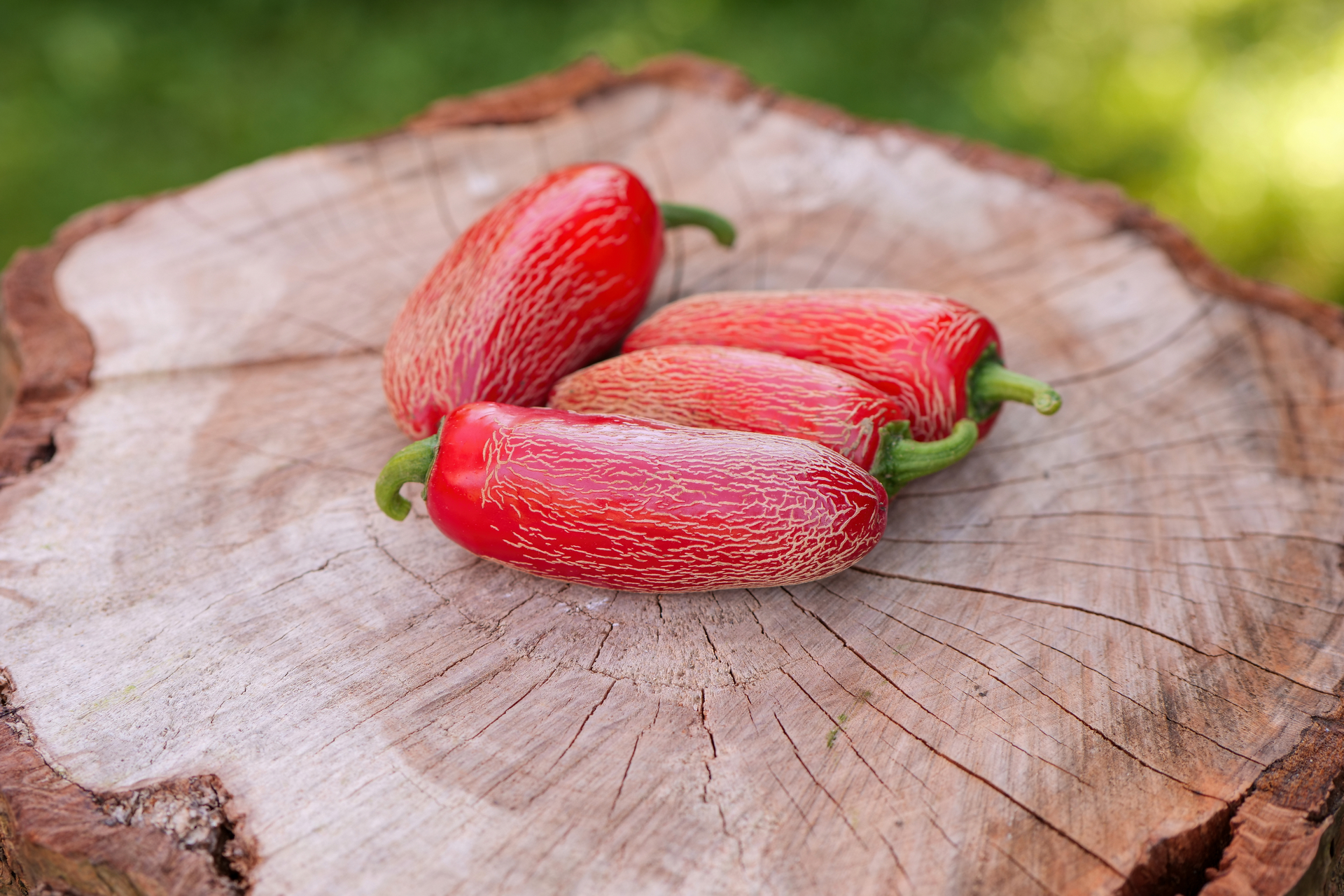 Plody: Jedno z nejkrásnějších Jalapeň na světě. Plody jsou podlouhlé, spíše užší, měří okolo 8-11,5 cm na délku a asi 2-2,5 cm v průměru. Zprvu jsou zelené, následně zrají do svítivé červené barvy. Povrch plodů je protkán neuvěřitelně…