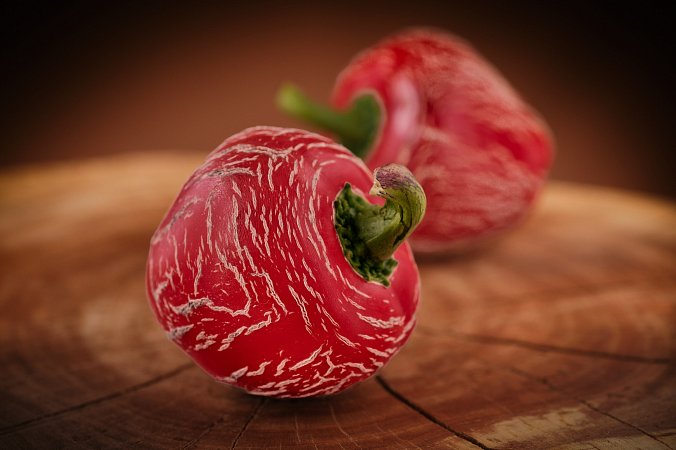 Plody: Nejunikátnější a snad i nejkrásnější Jalapeno ze všech známých kultivarů, alespoň dle našeho názoru. Plody jsou robustní, soudečkovité až zakulacené a měří kolem 5-7 cm na délku a asi 4-6 cm v průměru. Zprvu jsou zelené, následně zrají do krásného odstínu červené barvy. Na povrchu plodů se téměř vždy nachází výrazné kornatění, které jim dodává neuvěřitelně dekorativní vzhled.