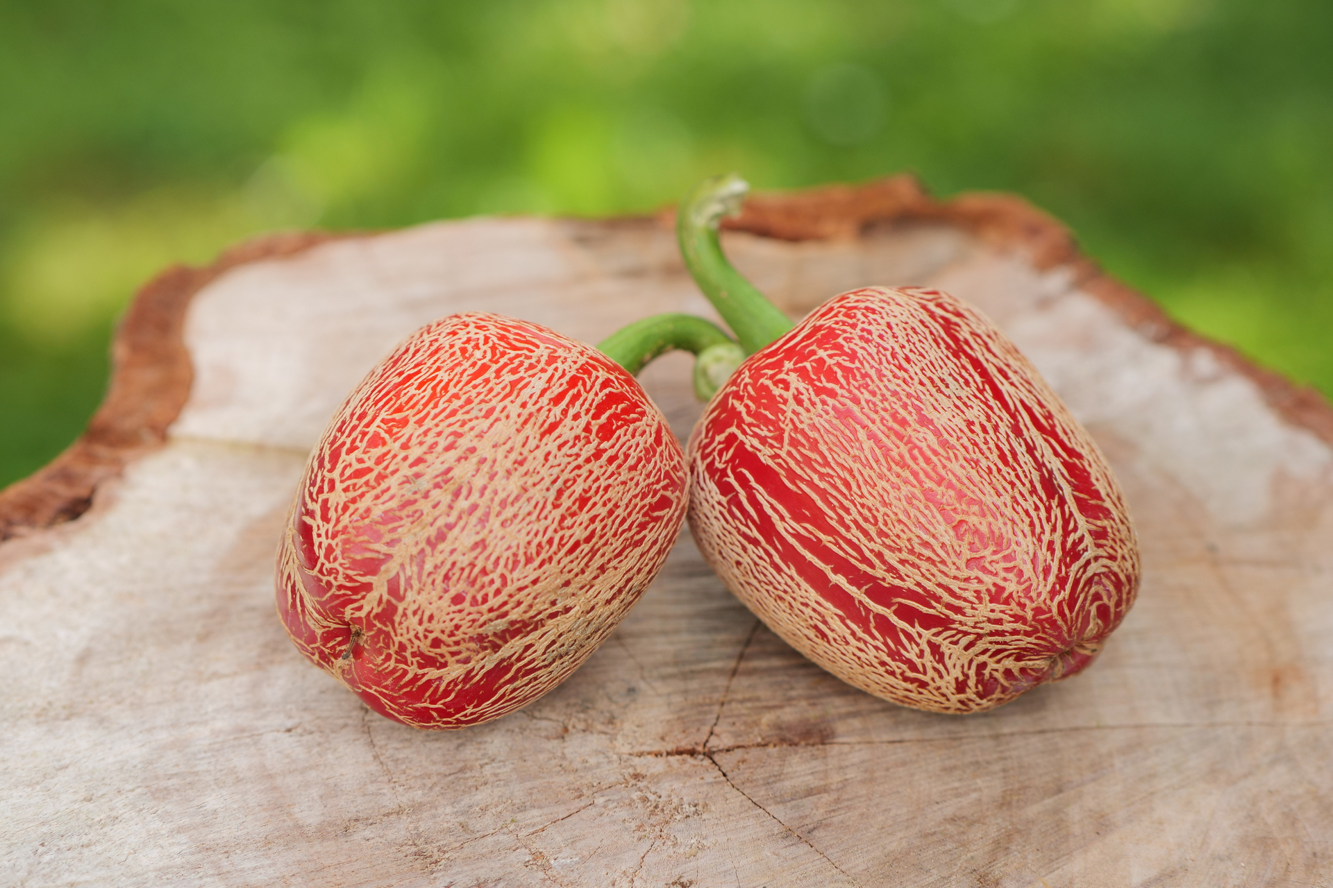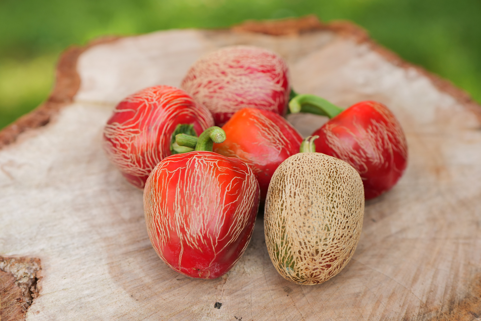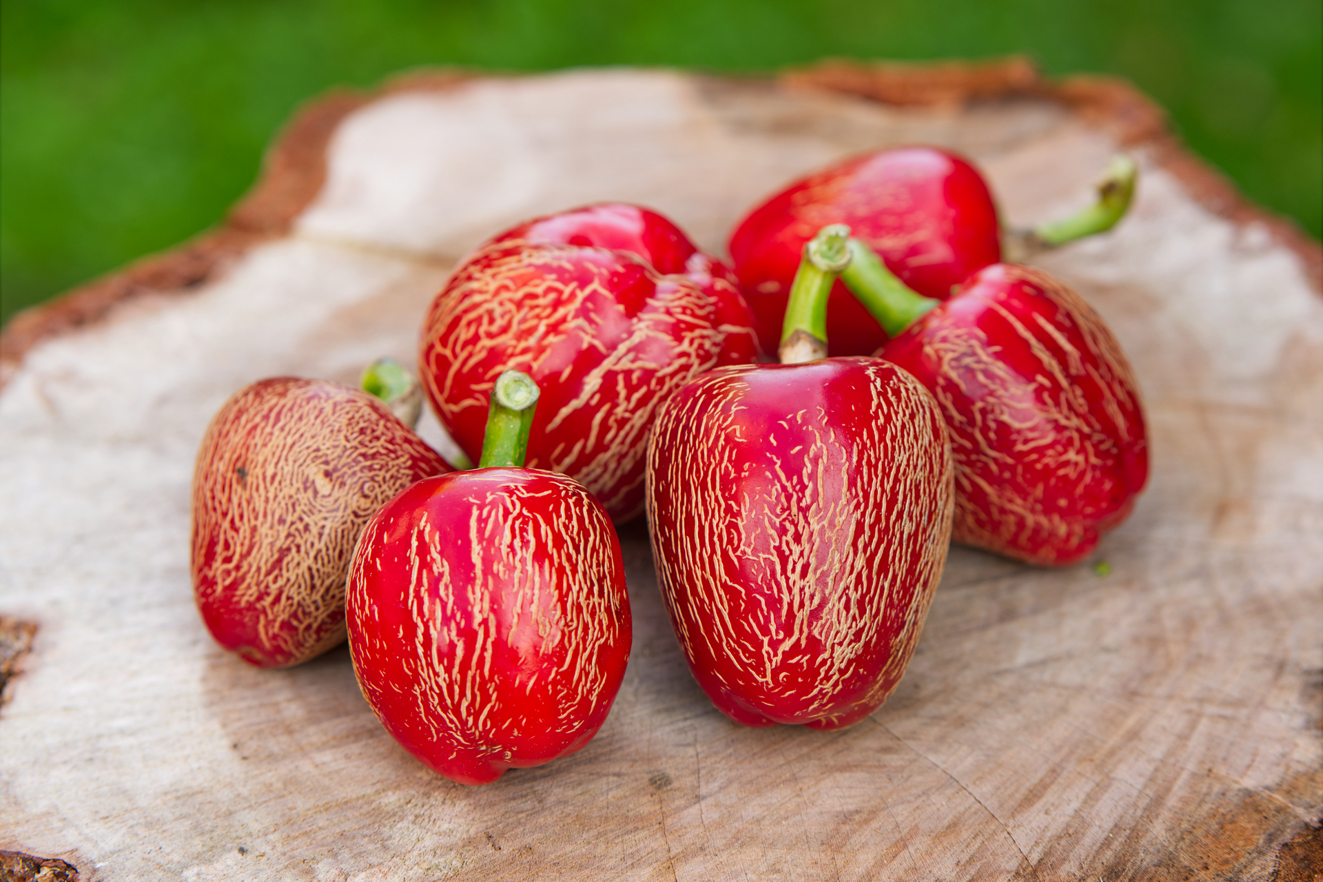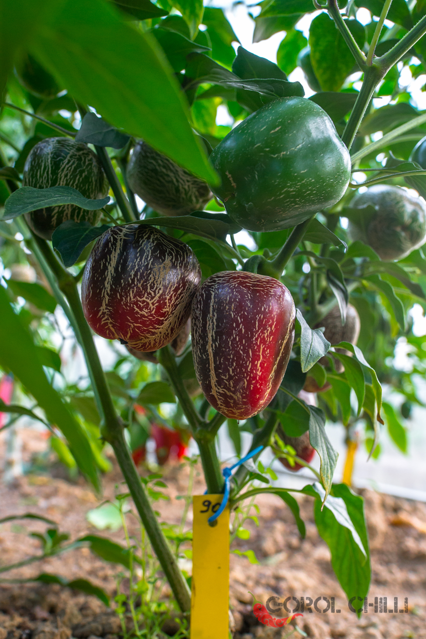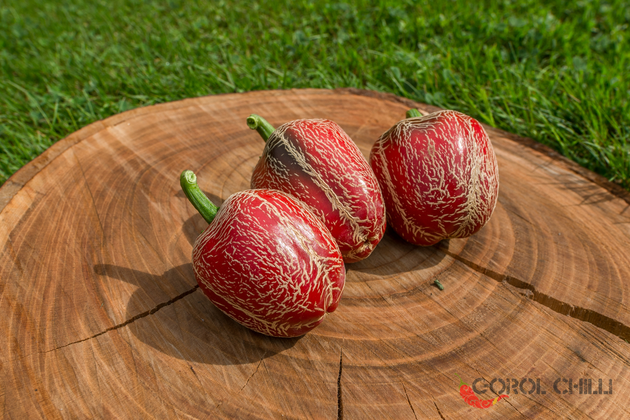 Plody: Nejunikátnější a snad i nejkrásnější Jalapeno ze všech známých kultivarů, alespoň dle našeho názoru. Plody jsou robustní, soudečkovité až zakulacené a měří kolem 5-7 cm na délku a asi 4-6 cm v průměru. Zprvu jsou zelené, následně zrají do krásného odstínu červené barvy. Na povrchu plodů se téměř vždy nachází výrazné kornatění, které jim dodává neuvěřitelně dekorativní vzhled.
