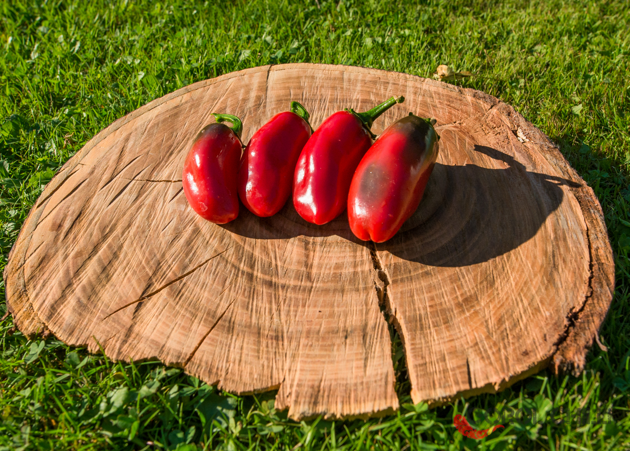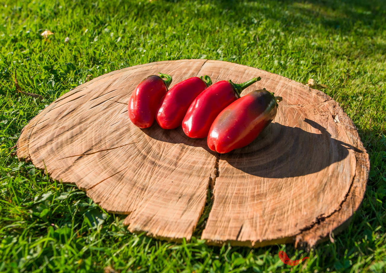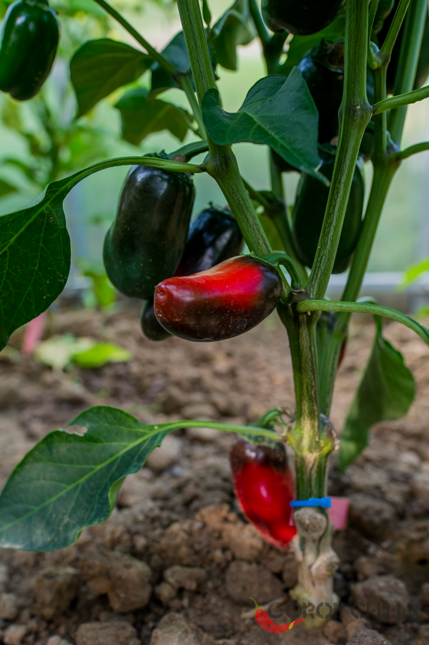 Plody: Spíše robustní a soudečkovité, což není pro kultivar typu Jalapeno příliš typické. Dorůstají délky okolo 5-7 cm a průměru okolo 2,5-3,5 cm. Zprvu jsou zelené, následně zrají do tmavě červené barvy.