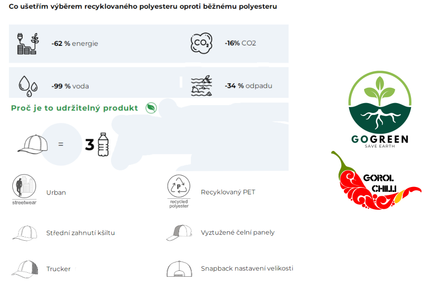 BE CHILLI HEAD jsou prostě pro toho, kdo se za chilli fakt nestydí. Nějakou chvíli nám to trvalo, napasovali jsme na hlavy několik typů kšiltek, až jsme vybrali to co na ty naše "chilli palice" sedlo. Jasný TRUCKERKA taky. Kšiltovka BRYCE je suprová truckerka a navíc pomůžeš planětě. Je totiž vyrobená z kompletně reckylovaného materiálu a na výrobu čepice se spotřebují 3 plastové lahve. Takže můžeš s námi jet na vlně GO GREEN - SAVE EARTH. Za to ti hlavu ozdobí 6 panelovka s pevným kšiltem, přední 2 panely jsou z tvrdého mátroše (200 g/m²), aby všechno drželo perfektně tvar. Zbylé 4 síťované panely se postarají o to, aby ti to tam pořádně větralo, jak budeš okopávat chilliny.