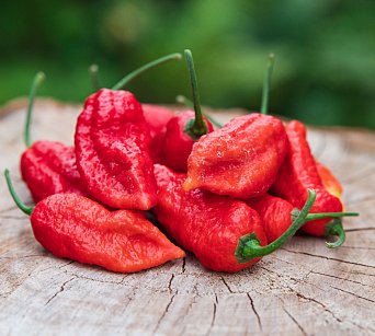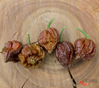 Plody: Moruga na steroidech. Plody jsou robustní, soudečkovité a s extrémně krabatým povrchem. Dorůstají pěkných rozměrů, asi 4-5 cm do délky a okolo 5 cm v průměru. Zprvu jsou tmavě zelené, následně zrají do červené barvy.  Chuť a pal:…