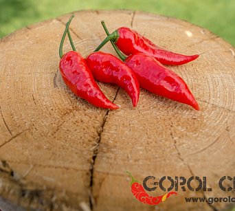 Plody: Podlouhlé, spíše užší a s krabatým povrchem. Dorůstají délky okolo 10 cm a průměru 2-2,5 cm. Zprvu jsou tmavě zelené, následně zrají do červené barvy.  Chuť a pal: Plody mají velmi kořeněnou a zemitou chuť, která je pro kultivary…