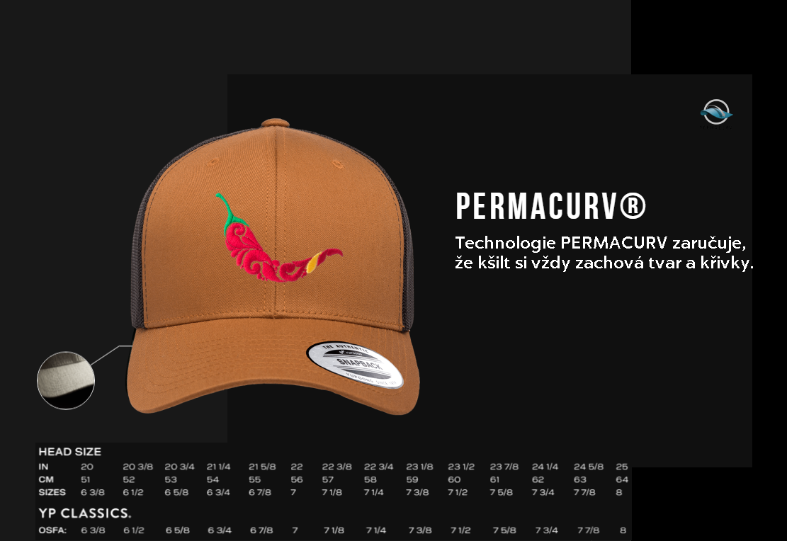 BE CHILLI HEAD jsou prostě pro toho, kdo se za chilli fakt nestydí. Několik měsíců jsme testovali na těch našich chilli palicích nový typ TRUCKERKY od špičkového výrobce Flexfit a prošel na výbornou. Kšiltovka Retro Trucker je naprosto topová "truckerka". Hlavu ti tak ozdobí 6 panelovka s pevným 8x prošitým kšiltem s technologií PERMACURV, díky které bude vždycky držet tvar a křivky, přední 2 panely jsou z tvrdého mátroše, aby všechno drželo perfektně tvar. Zbylé 4 síťované panely se postarají o to, aby ti to tam pořádně větralo, jak budeš okopávat chilliny.